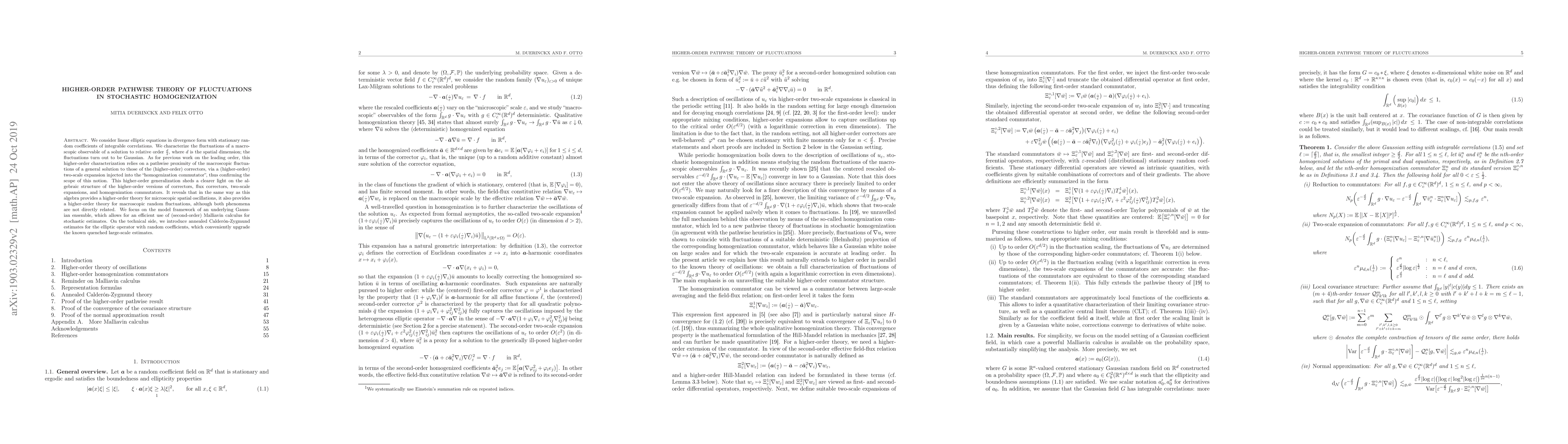 This paper develops a higher-order pathwise theory for fluctuations in stochastic homogenization of linear elliptic equations, showing Gaussian fluctuations at relative order $\frac{d}{2}$ in $d$ dimensions. It leverages a higher-order two-scale expansion and introduces annealed Calderón-Zygmund estimates for random coefficients, enhancing the understanding of both microscopic oscillations and macroscopic random fluctuations.