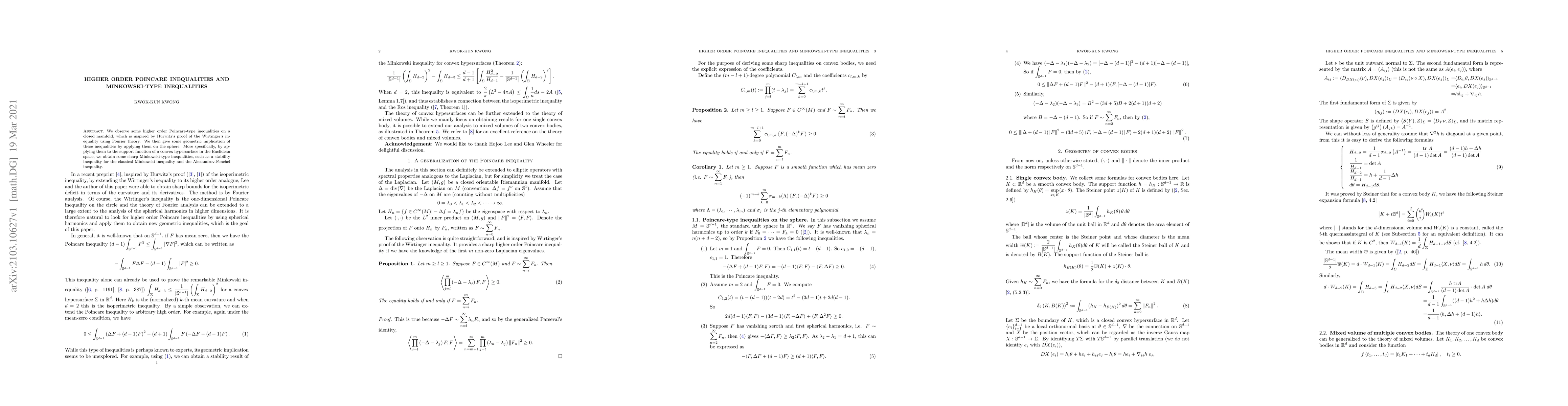 Researchers derive higher-order Poincare inequalities and apply them to convex hypersurfaces on a sphere, leading to sharp Minkowski-type inequalities and implications for classical inequalities.