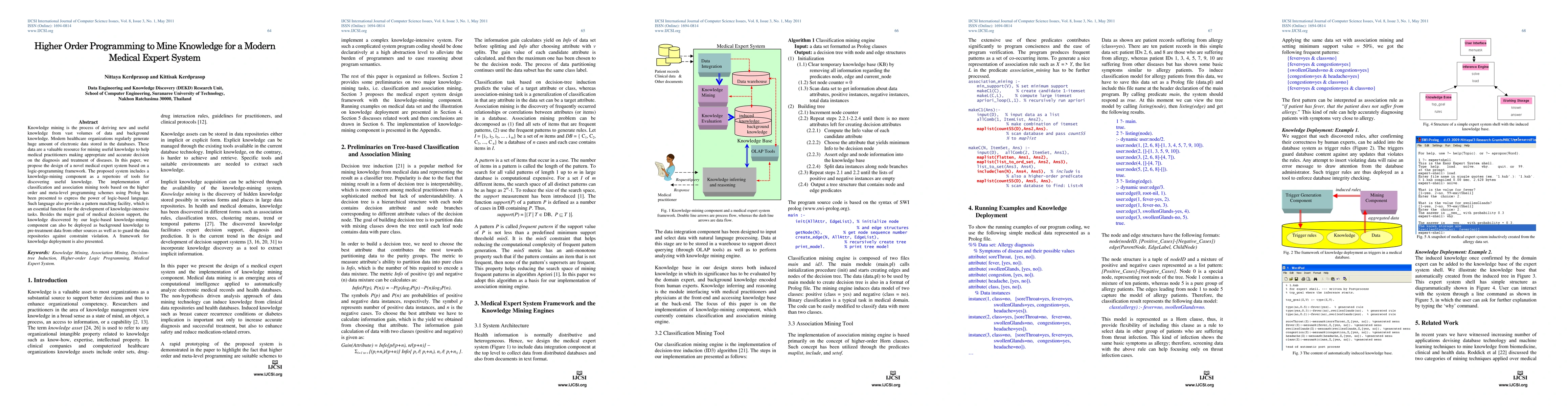 A novel medical expert system is proposed using logic-programming framework to mine knowledge from vast electronic data, providing accurate decision support for diagnosis and treatment.