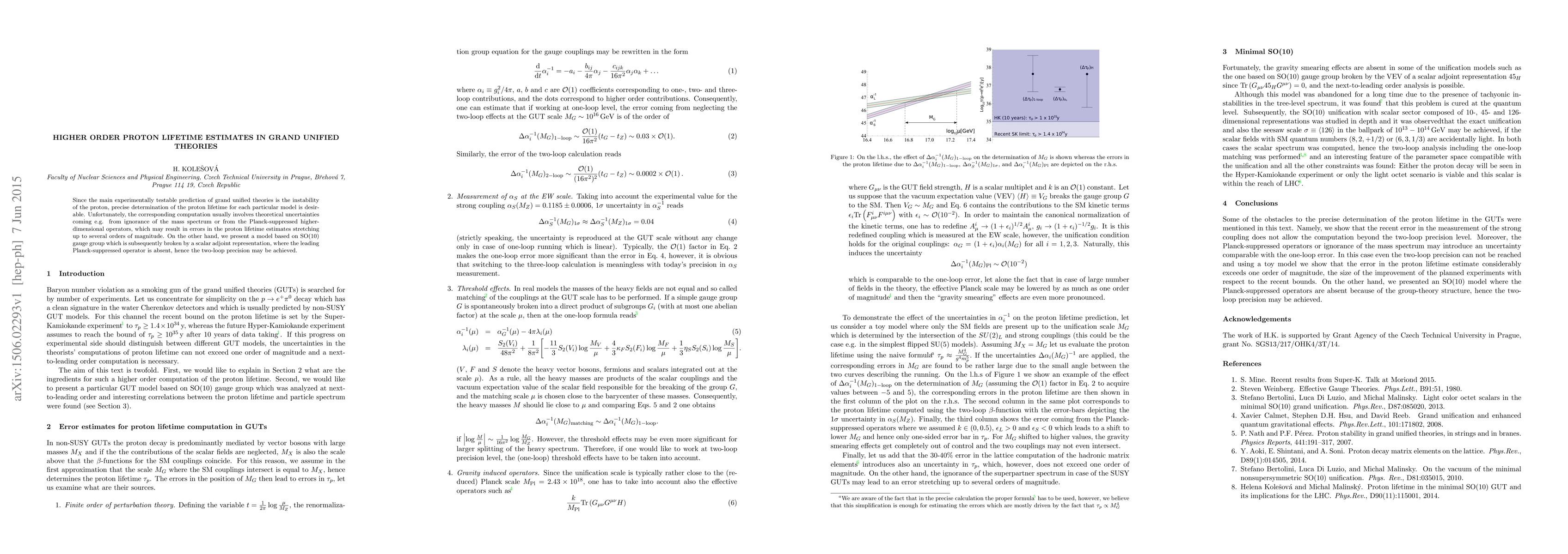 This research proposes a SO(10) grand unified theory model where higher order proton lifetime estimates can achieve two-loop precision, eliminating uncertainties from Planck-suppressed higher-dimensional operators. The model aims to provide more accurate predictions of proton instability compared to conventional methods.