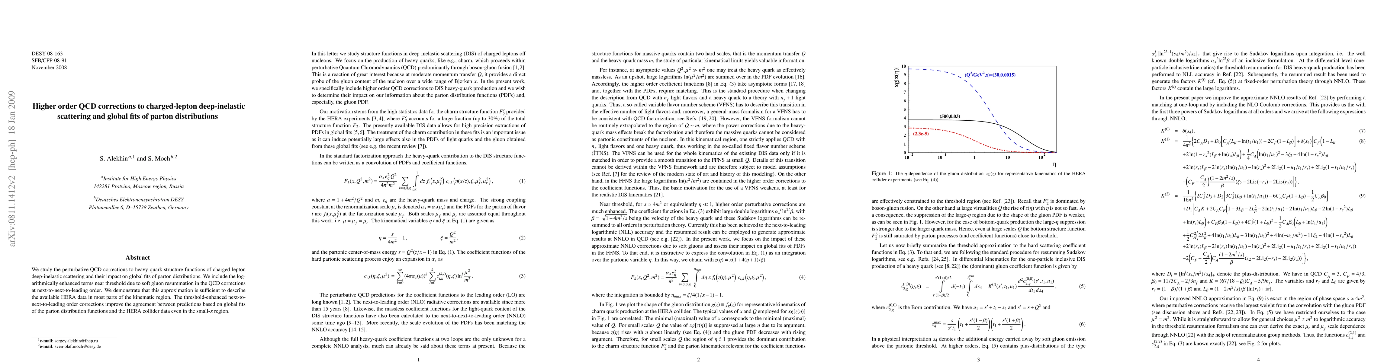This research examines QCD corrections to heavy-quark structure functions in charged-lepton deep-inelastic scattering, enhancing predictions' accuracy with soft gluon resummation at next-to-next-to-leading order. These improvements align global fits of parton distributions better with HERA collider data, especially in the small-x region.