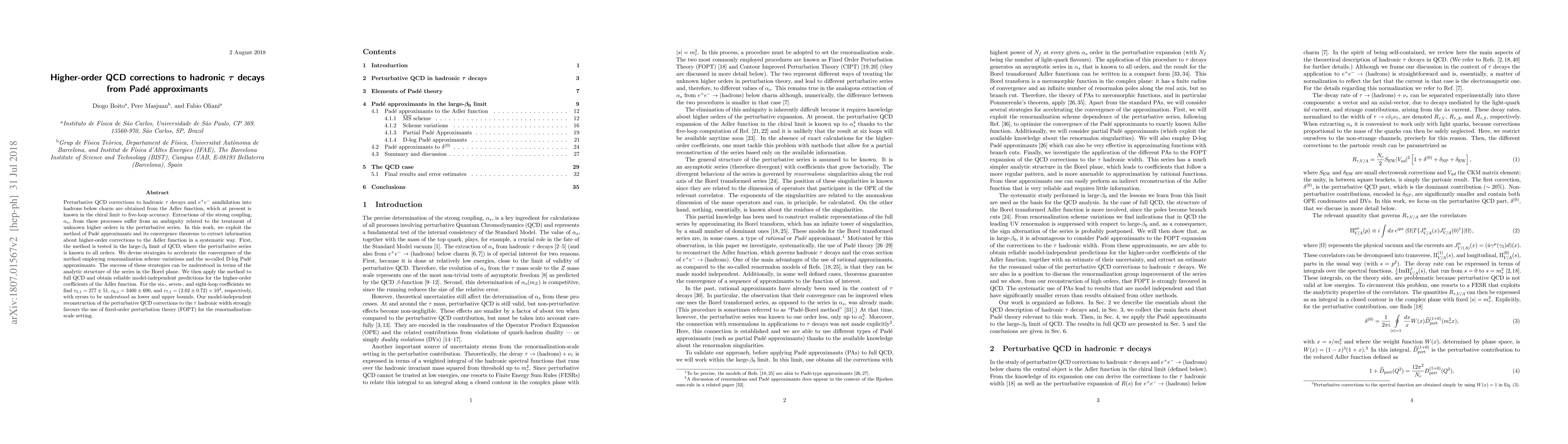 This paper uses Padé approximants to systematically extract higher-order perturbative QCD corrections for hadronic $\tau$ decays, providing model-independent predictions for coefficients up to eight loops. The method is tested and refined in the large-$\beta_0$ limit before application to full QCD, favoring fixed-order perturbation theory for renormalization-scale setting.