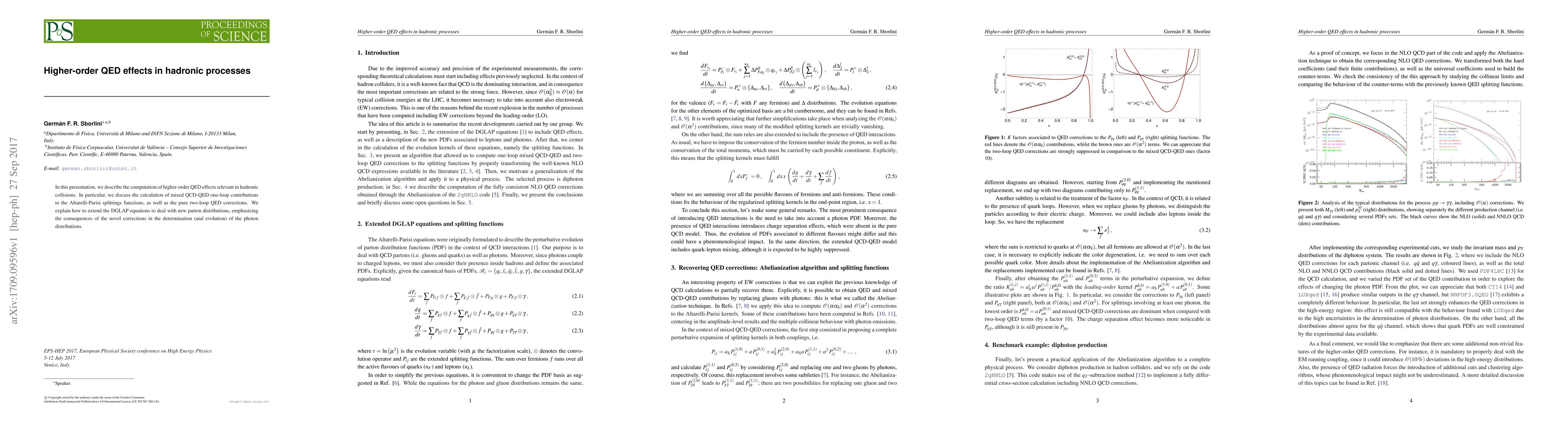 In this presentation, we describe the computation of higher-order QED effects relevant in hadronic collisions. In particular, we discuss the calculation of mixed QCD-QED one-loop contributions to the Altarelli-Parisi splittings functions, as well as the pure two-loop QED corrections. We explain how to extend the DGLAP equations to deal with new parton distributions, emphasizing the consequences of the novel corrections in the determination (and evolution) of the photon distributions.