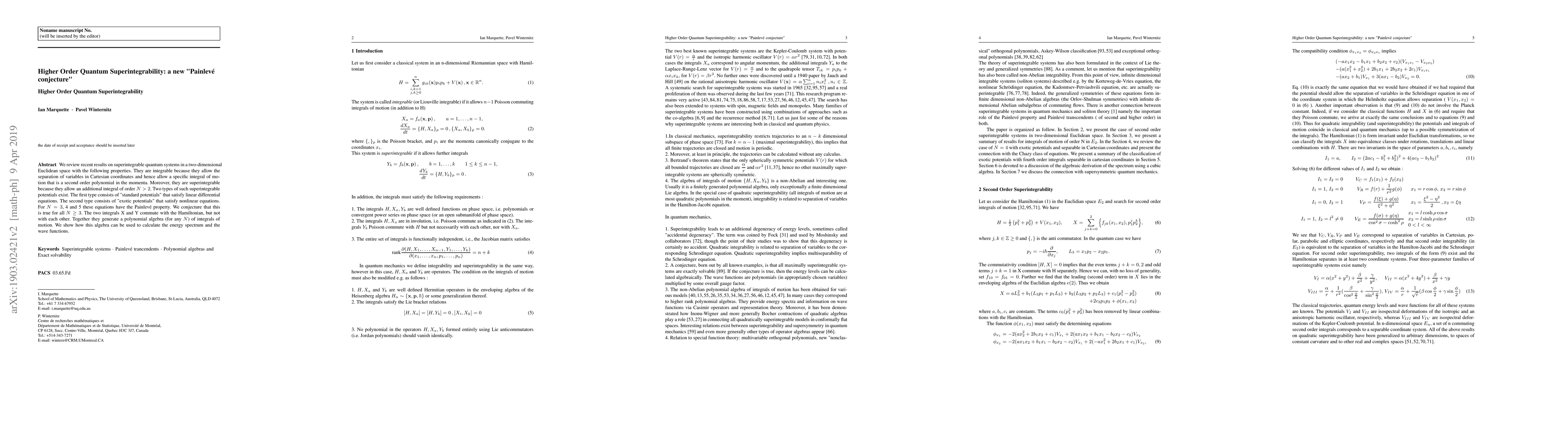 Researchers discovered a new class of quantum systems with multiple integrals of motion, proposing a conjecture that these systems have the Painlevé property for all N greater than or equal to 3.