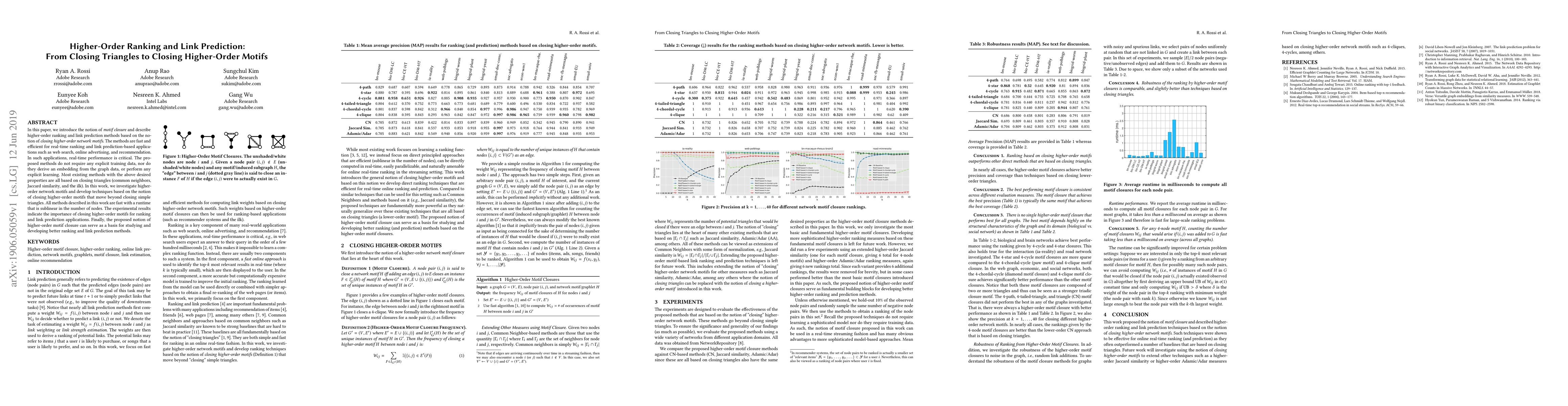 This paper proposes efficient higher-order ranking and link prediction methods based on closing higher-order network motifs, surpassing traditional triangle-based approaches. The methods achieve fast, sublinear runtime performance and do not require training data or explicit learning, making them suitable for real-time applications like web search and recommendation.