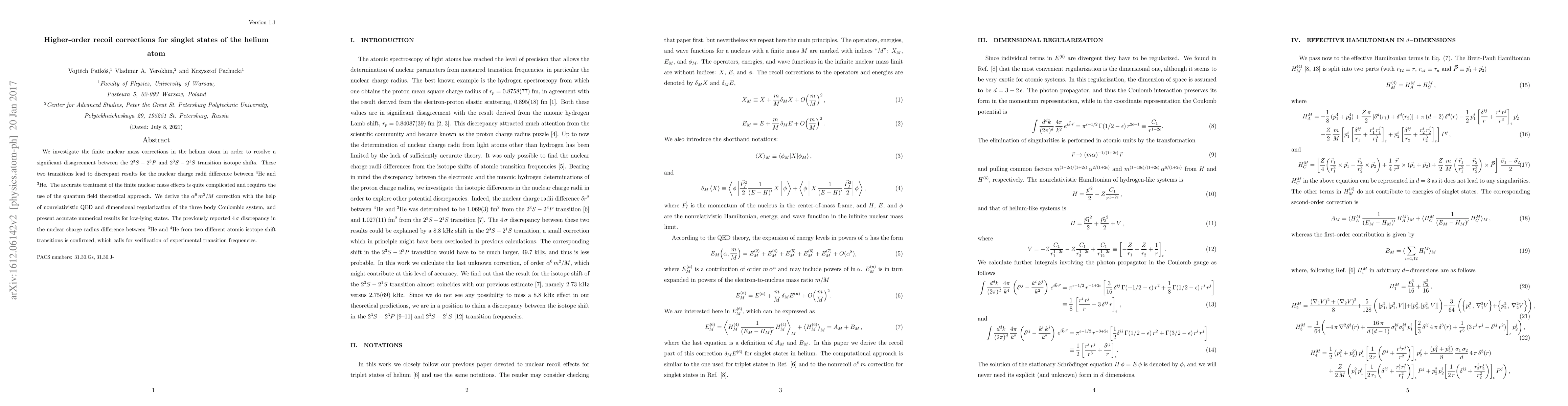 Researchers investigated finite nuclear mass corrections in helium atom to resolve a disagreement between transition frequencies, confirming a 4-sigma discrepancy in the nuclear charge radius difference between two isotopes.