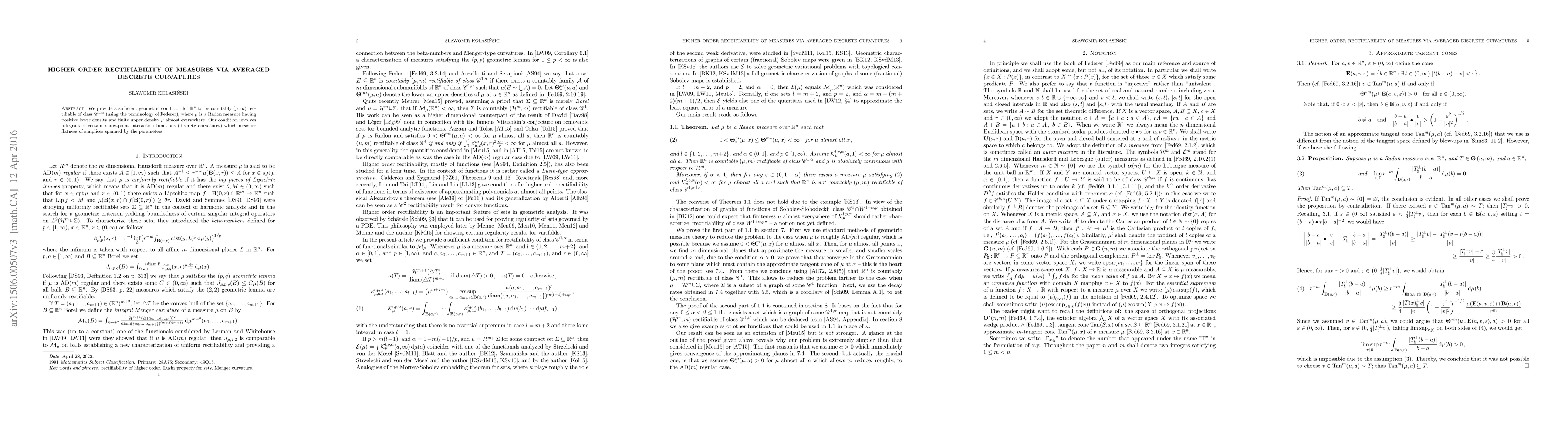 This paper establishes a sufficient geometric condition for $\mathbb{R}^n$ to be countably $(\mu,m)$ rectifiable of class $\mathscr{C}^{1,\alpha}$ using integrals of many-point interaction functions (discrete curvatures) that measure the flatness of simplices.