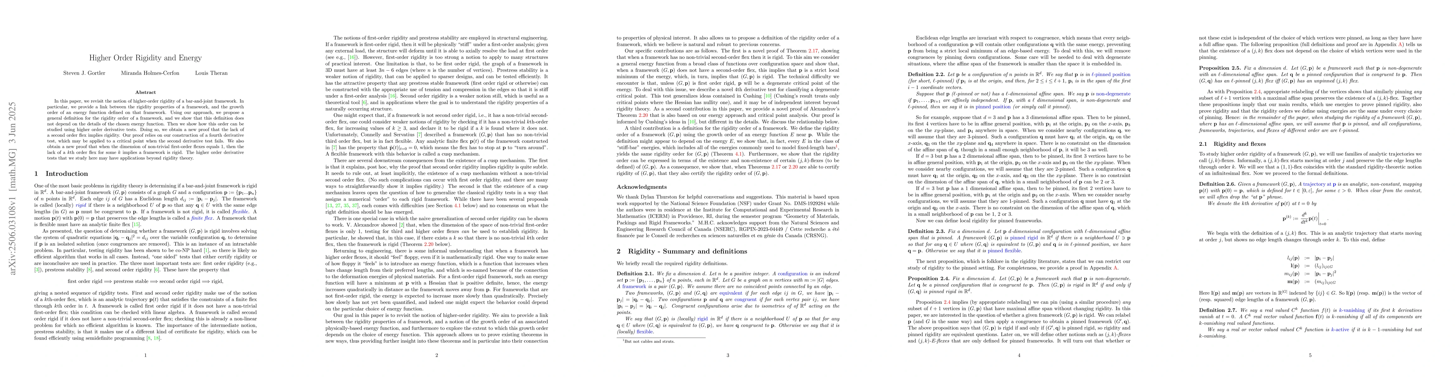This paper establishes a connection between framework rigidity and energy function growth, proposing a rigidity order definition. It introduces a fourth derivative test to prove that a lack of second-order flex implies rigidity, and demonstrates that absence of kth-order flex for some k indicates a rigid framework when the dimension of non-trivial first-order flexes equals 1. The methodology may extend beyond rigidity theory.