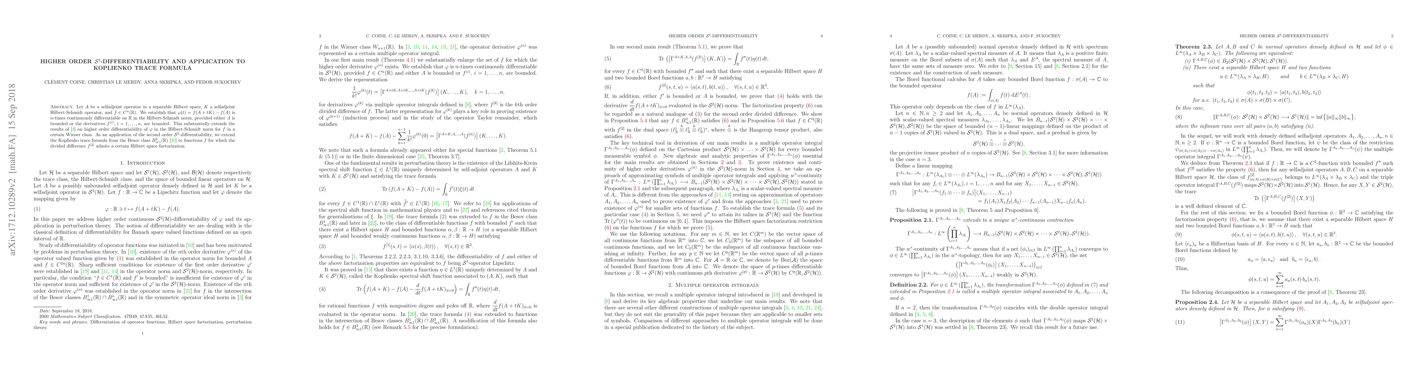 This paper demonstrates that under specific conditions, a function applied to a selfadjoint operator plus a Hilbert-Schmidt operator is $n$-times continuously differentiable. As an application, it extends the Koplienko trace formula for a broader class of functions.