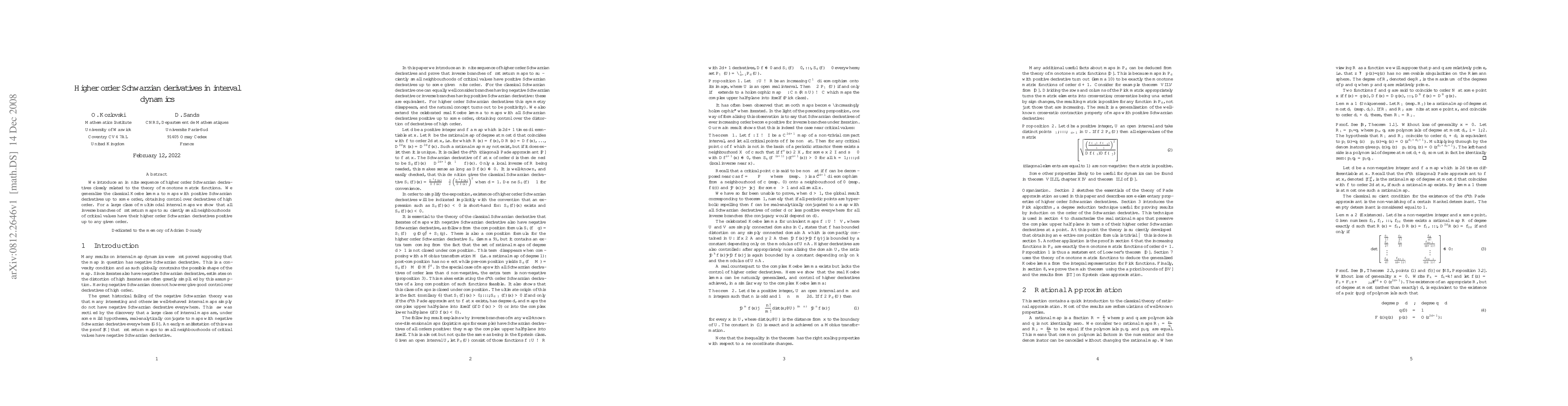 This paper introduces higher order Schwarzian derivatives linked to monotone matrix functions and generalizes the Koebe lemma for maps with positive Schwarzian derivatives up to specified orders, demonstrating that for many multimodal interval maps, inverse branches of first return maps maintain positive higher order Schwarzian derivatives.