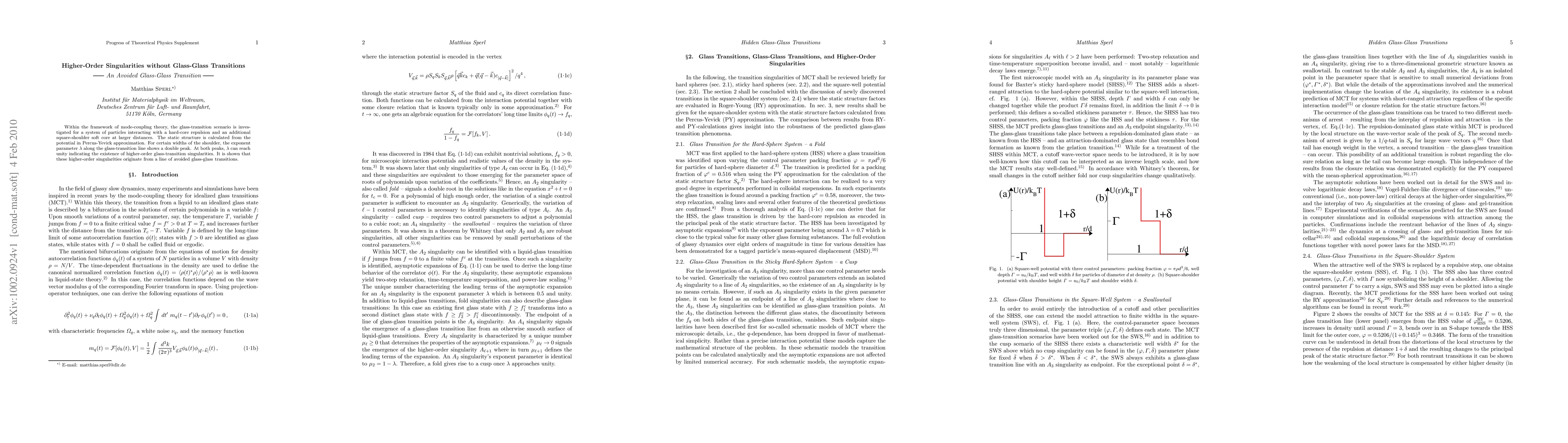 Within the framework of mode-coupling theory, the glass-transition scenario is investigated for a system of particles interacting with a hard-core repulsion and an additional square-shoulder soft core at larger distances. The static structure is calculated from the potential in Percus-Yevick approximation. For certain widths of the shoulder, the exponent parameter lambda along the glass-transition line shows a double peak. At both peaks, lambda can reach unity indicating the existence of higher-order glass-transition singularities. It is shown that these higher-order singularities originate from a line of avoided glass-glass transitions.