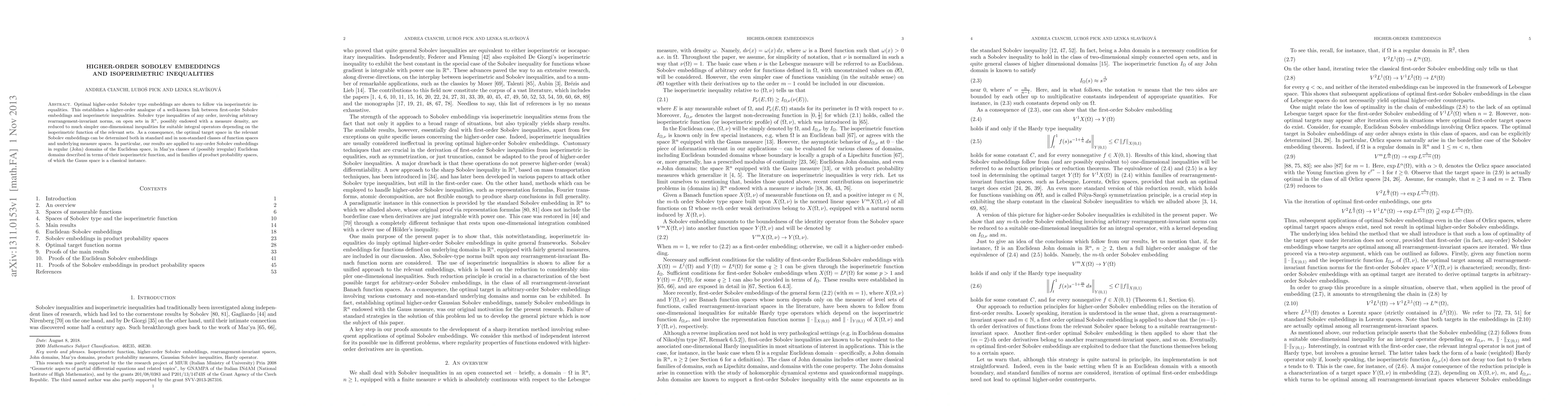 This paper establishes higher-order Sobolev embeddings via isoperimetric inequalities, providing a link analogous to the first-order case. It reduces complex Sobolev inequalities to simpler one-dimensional inequalities based on integral operators and the isoperimetric function, applicable to various domains and probability spaces.