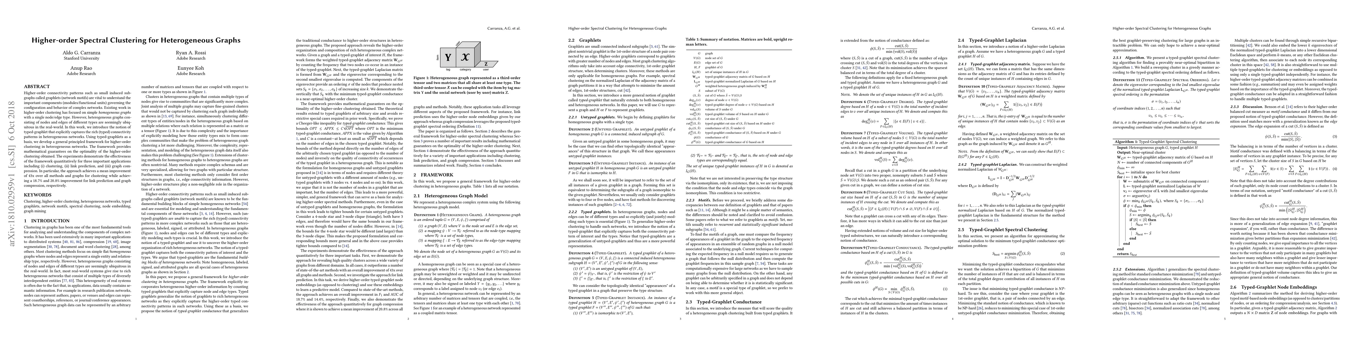 This paper introduces a framework for higher-order clustering in heterogeneous graphs using typed-graphlets to capture complex connectivity patterns. The proposed method achieves significant improvements in clustering, link prediction, and graph compression compared to existing methods.