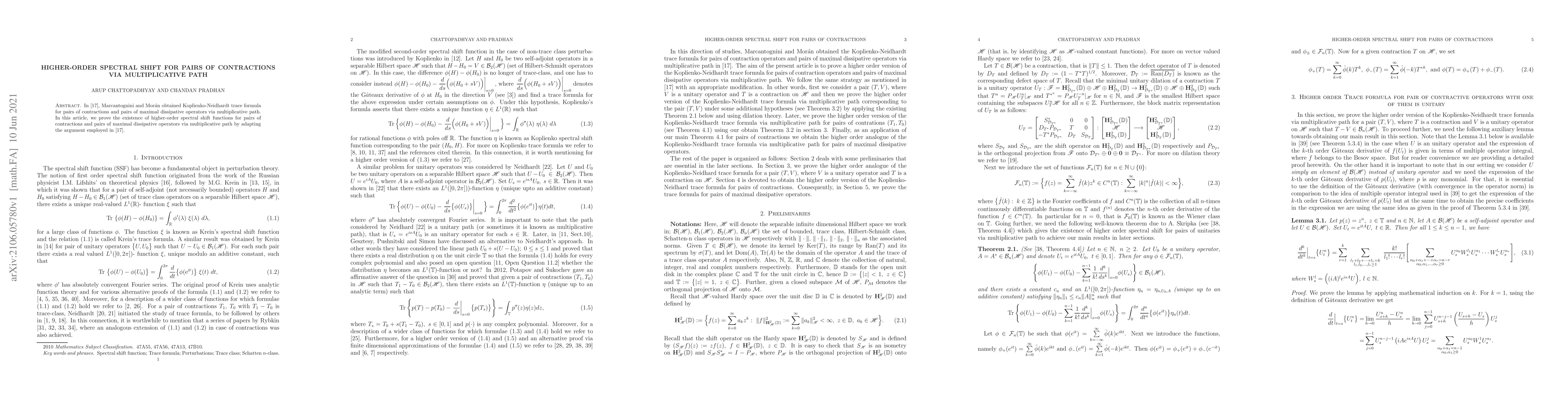 This paper extends the work of Marcantognini and Morán by proving the existence of higher-order spectral shift functions for pairs of contractions and pairs of maximal dissipative operators, utilizing a multiplicative path approach similar to their original method.