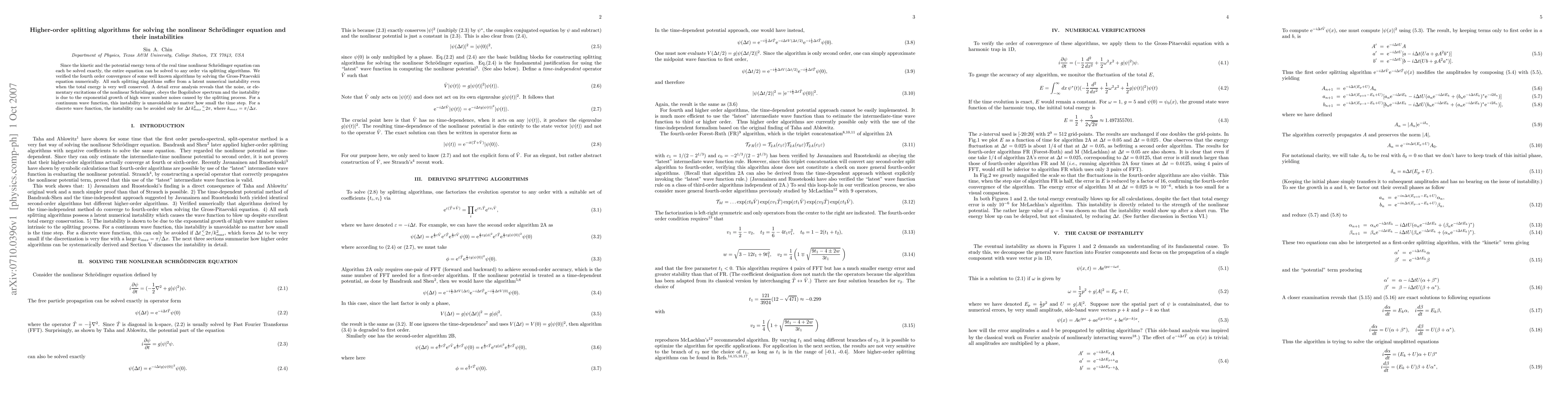Researchers found that high-order splitting algorithms used to solve the nonlinear Schr"odinger equation can suffer from a latent numerical instability due to exponential growth of noise in the solution. The instability is unavoidable for continuum wave functions but can be mitigated for discrete wave functions under certain conditions.