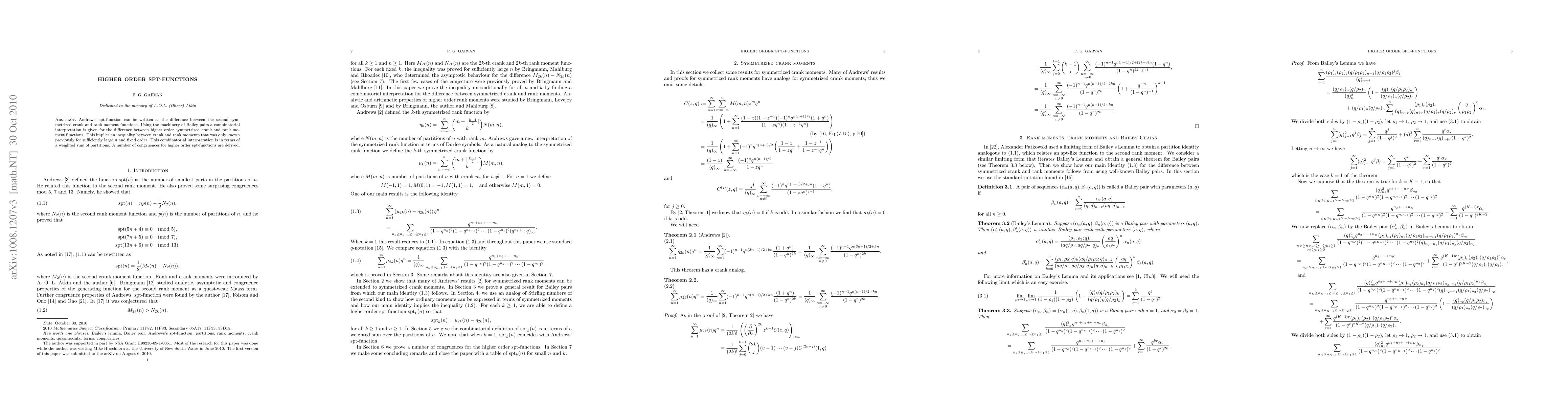 Andrews' spt-function can be written as the difference between the second symmetrized crank and rank moment functions. Using the machinery of Bailey pairs a combinatorial interpretation is given for the difference between higher order symmetrized crank and rank moment functions. This implies an inequality between crank and rank moments that was only know previously for sufficiently large n and fixed order. This combinatorial interpretation is in terms of a weighted sum of partitions. A number of congruences for higher order spt-functions are derived.
