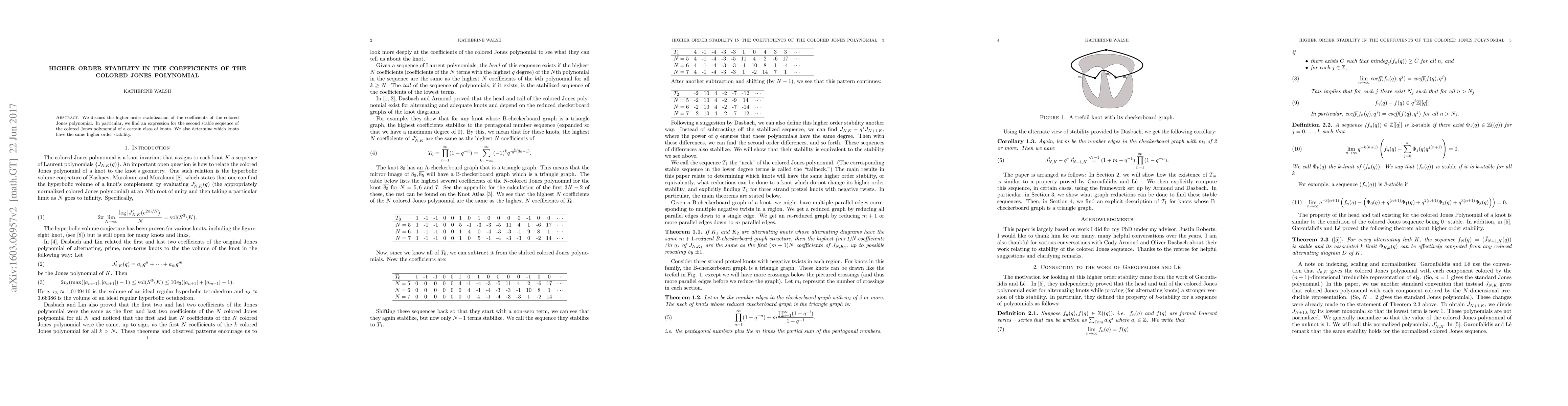 Summary: This paper investigates higher order stabilization in the coefficients of the colored Jones polynomial, presenting an expression for the second stable sequence of a specific knot class and identifying knots with identical higher order stability.