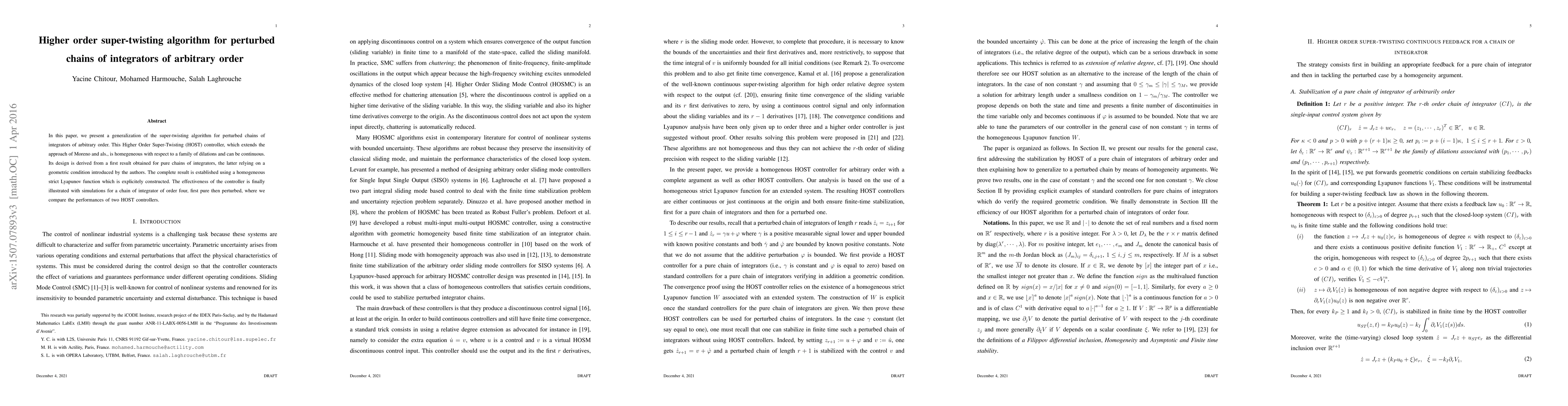 A new algorithm called Higher Order Super-Twisting (HOST) controller is introduced to control chains of integrators of arbitrary order, with potential applications in robotics and control systems.