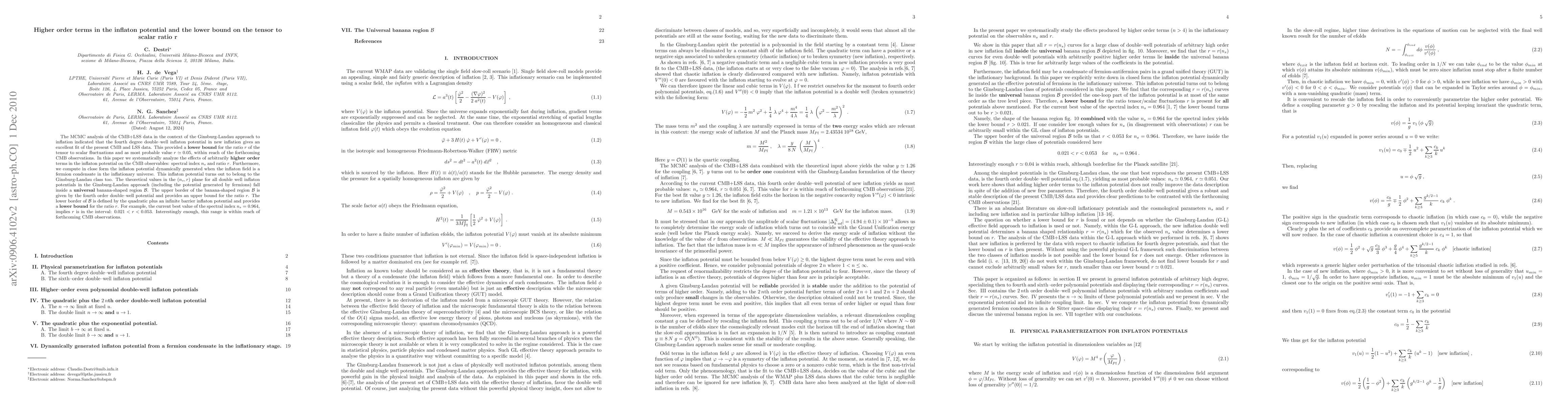 The MCMC analysis of the CMB+LSS data in the context of the Ginsburg-Landau approach to inflation indicated that the fourth degree double--well inflaton potential best fits the present CMB and LSS data. This provided a lower bound for the ratio r of the tensor to scalar fluctuations and as most probable value r = 0.05, within reach of the forthcoming CMB observations. We systematically analyze here the effects of arbitrary higher order terms in the inflaton potential on the CMB observables: spectral index ns and ratio r. Furthermore, we compute in close form the inflaton potential dynamically generated when the inflaton field is a fermion condensate in the inflationary universe. This inflaton potential turns to belong to the Ginsburg-Landau class too. The theoretical values in the (ns,r) plane for all double well inflaton potentials in the Ginsburg-Landau approach (including the potential generated by fermions) turn to be inside a universal banana-shaped region B. The upper border of the banana-shaped region B is given by the fourth order double--well potential and provides an upper bound for the ratio r.The lower border of B is defined by the quadratic plus an infinite barrier inflaton potential and provides a lower bound for the ratio r. For example, the current best value of the spectral index ns = 0.964, implies r is in the interval: 0.021 < r < 0.053. Interestingly enough, this range is within reach of forthcoming CMB observations.