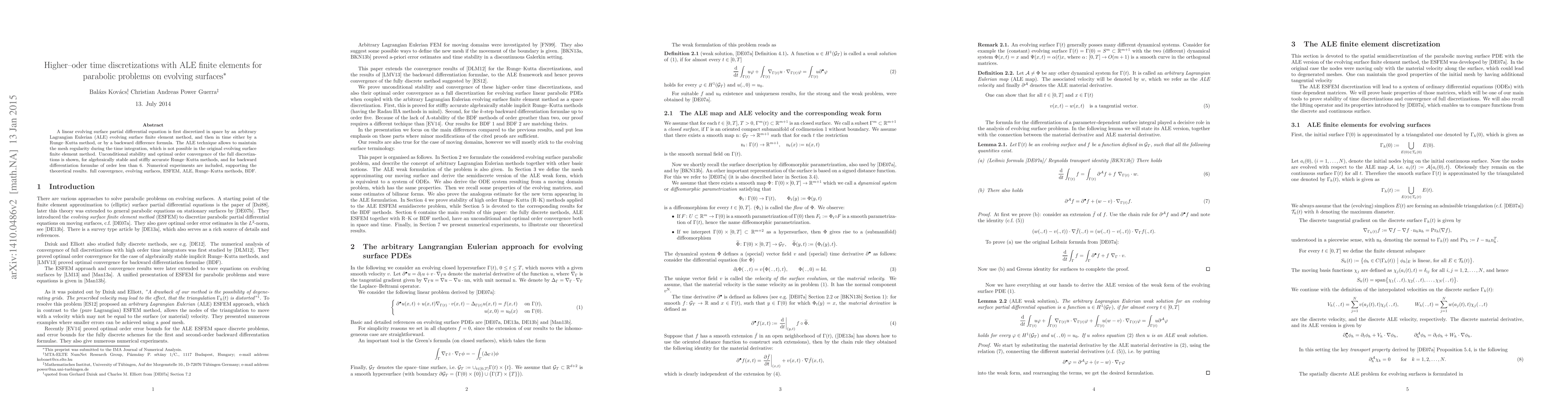 This paper presents higher-order time discretizations using ALE finite elements for parabolic problems on evolving surfaces, ensuring mesh regularity and achieving unconditional stability and optimal convergence. Numerical experiments validate the theoretical findings.
