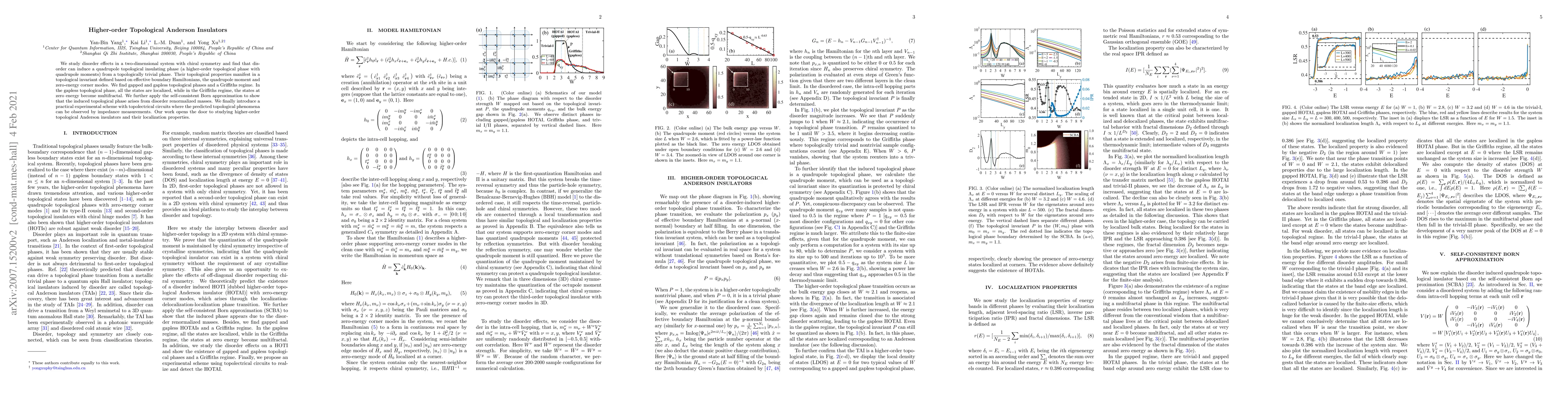 This research investigates the impact of disorder on a two-dimensional system with chiral symmetry, revealing the induction of a higher-order topological insulating phase characterized by quadrupole moments and zero-energy corner modes. The study employs a self-consistent Born approximation to demonstrate that disorder-induced phases stem from renormalized masses, and proposes topoelectrical circuits for experimental observation via impedance measurements.
