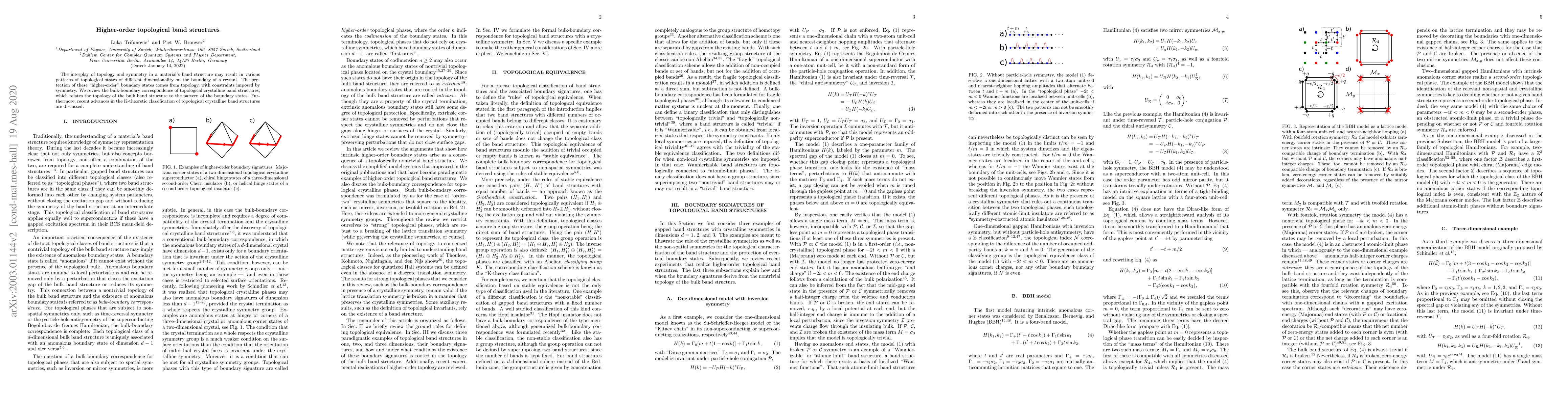 The interplay of topology and symmetry in a material's band structure may result in various patterns of topological states of different dimensionality on the boundary of a crystal. The protection of these "higher-order" boundary states comes from topology, with constraints imposed by symmetry. We review the bulk-boundary correspondence of topological crystalline band structures, which relates the topology of the bulk band structure to the pattern of the boundary states. Furthermore, recent advances in the K-theoretic classification of topological crystalline band structures are discussed.