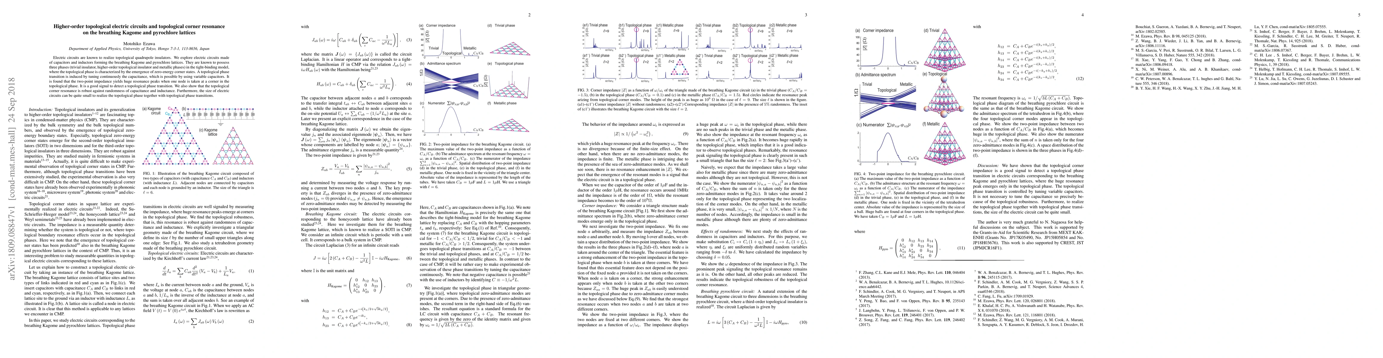 This paper investigates electric circuits based on breathing Kagome and pyrochlore lattices, demonstrating their potential to exhibit higher-order topological phases and topological corner resonance. The study finds that variable capacitors can induce topological phase transitions, and topological corner resonance, characterized by significant impedance peaks, serves as a reliable indicator of these transitions, remaining robust against capacitance variations.