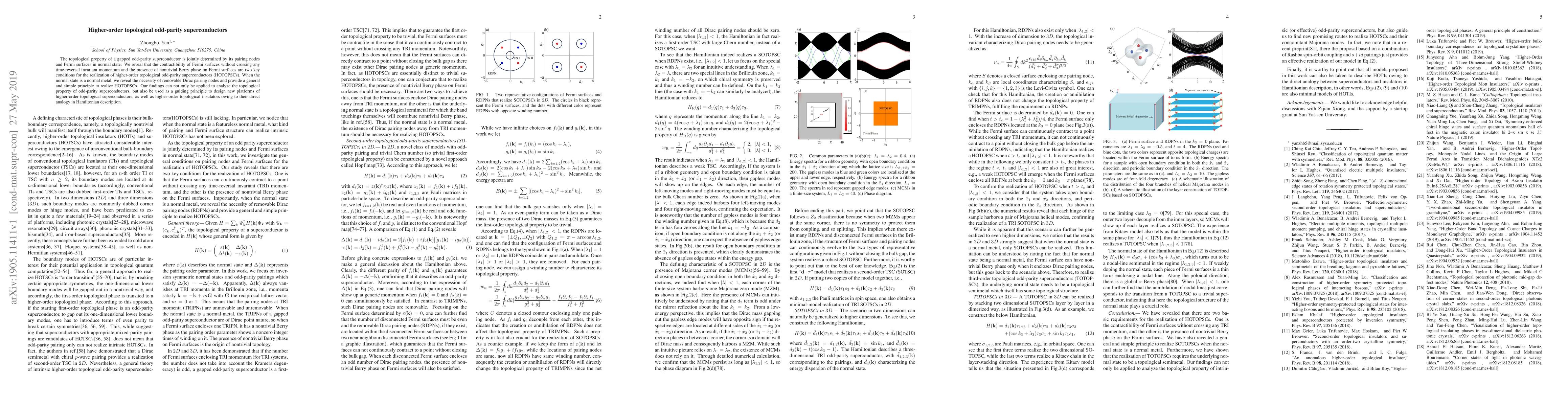 The paper identifies conditions for realizing higher-order topological odd-parity superconductors, focusing on the contractibility of Fermi surfaces and nontrivial Berry phase, and provides a principle for their construction in normal metal states. These insights can guide the design of new topological superconductors and insulators.