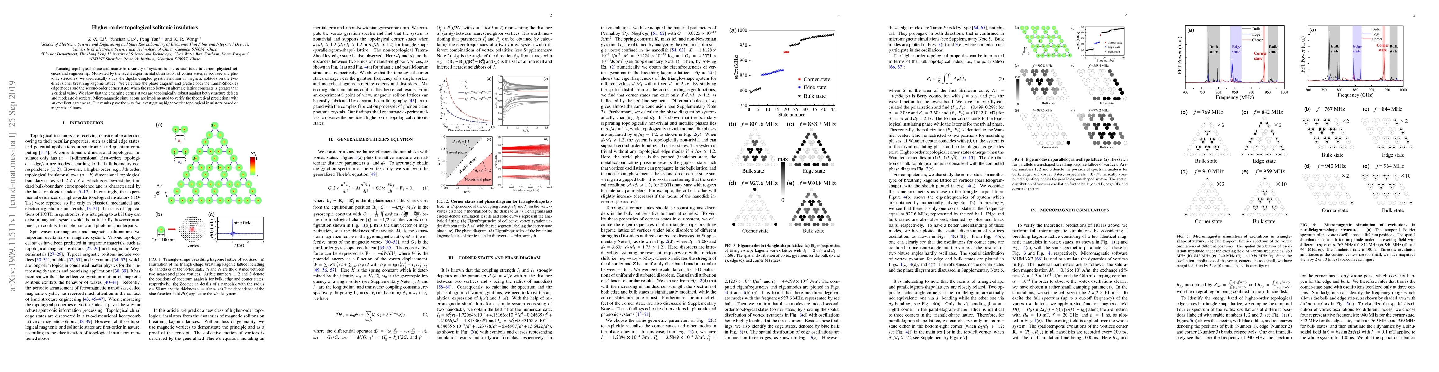 This paper theoretically explores higher-order topological solitonic insulators on a two-dimensional breathing kagome lattice, predicting Tamm-Shockley edge modes and second-order corner states. Micromagnetic simulations confirm the robustness of these corner states against defects and disorders, suggesting potential for practical applications in magnetic solitons.