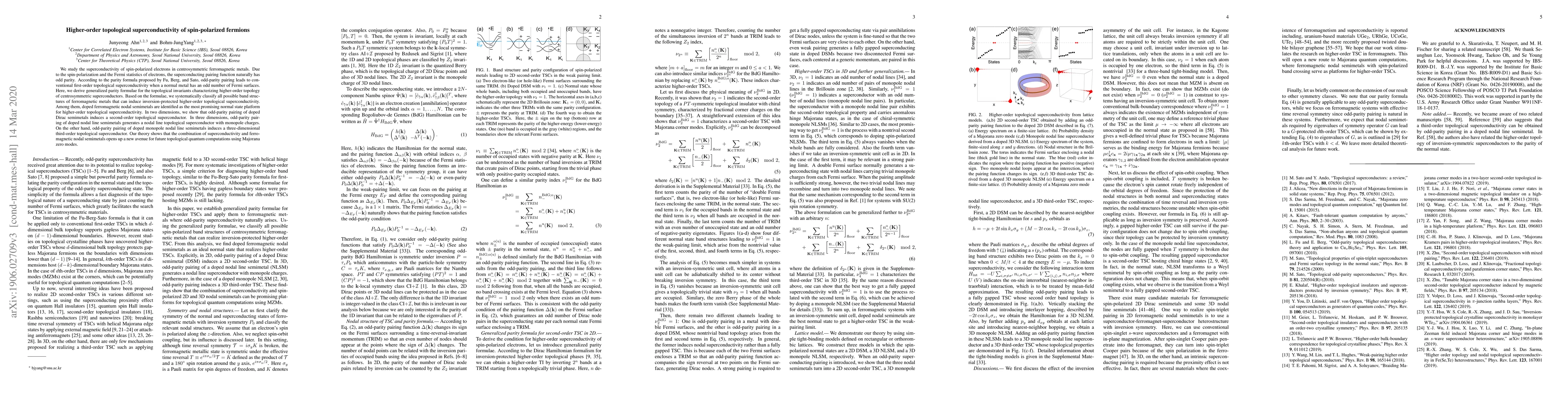 This paper explores the emergence of higher-order topological superconductivity in spin-polarized electrons within centrosymmetric ferromagnetic metals, identifying doped ferromagnetic nodal semimetals as promising platforms. It proposes generalized parity formulae to classify band structures and demonstrates the induction of second-order topological superconductors in two dimensions and third-order in three dimensions, paving the way for future topological quantum computing.