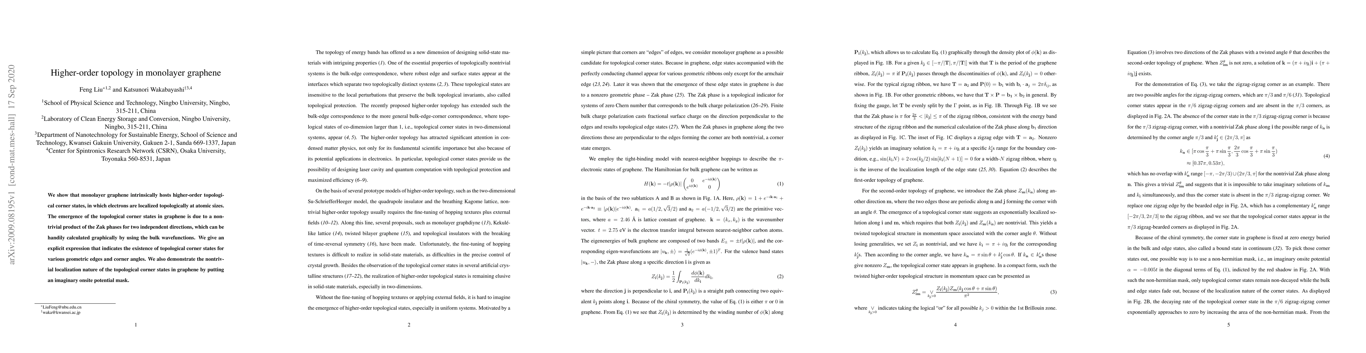 We show that monolayer graphene intrinsically hosts higher-order topological corner states, in which electrons are localized topologically at atomic sizes. The emergence of the topological corner states in graphene is due to a nontrivial product of the Zak phases for two independent directions, which can be handily calculated graphically by using the bulk wavefunctions. We give an explicit expression that indicates the existence of topological corner states for various geometric edges and corner angles. We also demonstrate the nontrivial localization nature of the topological corner states in graphene by putting an imaginary onsite potential mask.