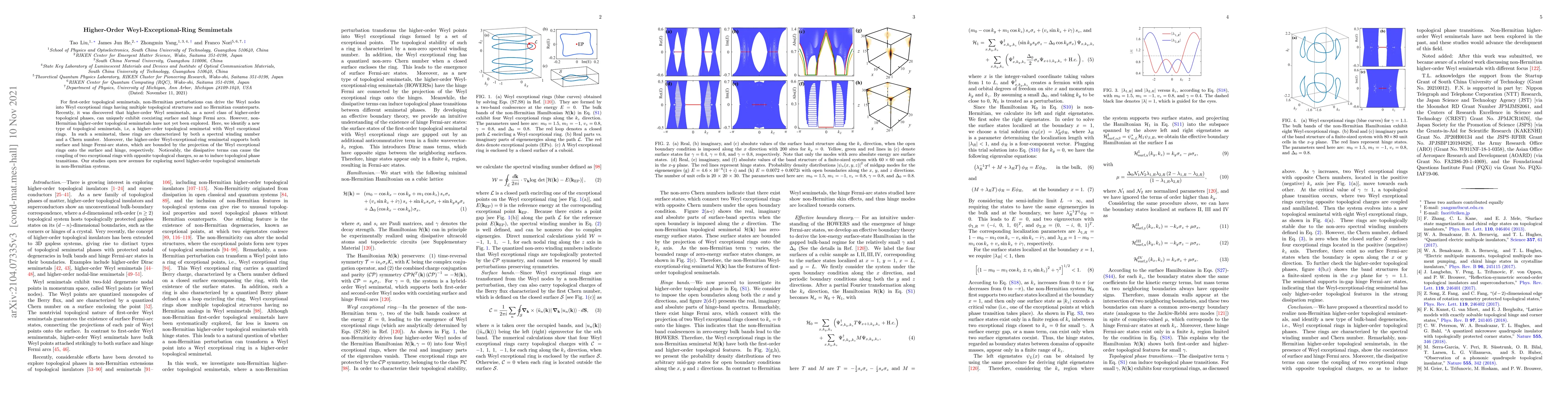 This research identifies a new class of higher-order topological semimetals featuring Weyl exceptional rings, characterized by both spectral winding and Chern numbers. These semimetals exhibit unique surface and hinge Fermi arcs, and can undergo topological phase transitions driven by non-Hermitian perturbations.