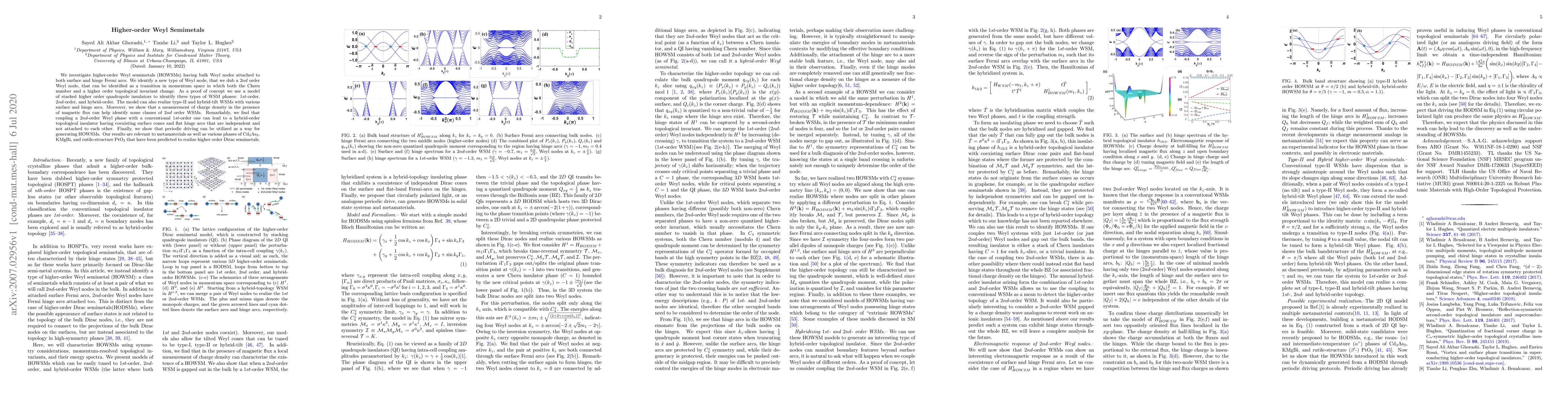 This research explores higher-order Weyl semimetals (HOWSMs) featuring bulk Weyl nodes linked to surface and hinge Fermi arcs, introducing a novel $2nd$ order Weyl node. It demonstrates three HOWSM phases—$1st$-order, $2nd$-order, and hybrid-order—using a model of stacked quadrupole insulators, showing potential for type-II and hybrid-tilt WSMs, and suggesting periodic driving as a method for generating HOWSMs.