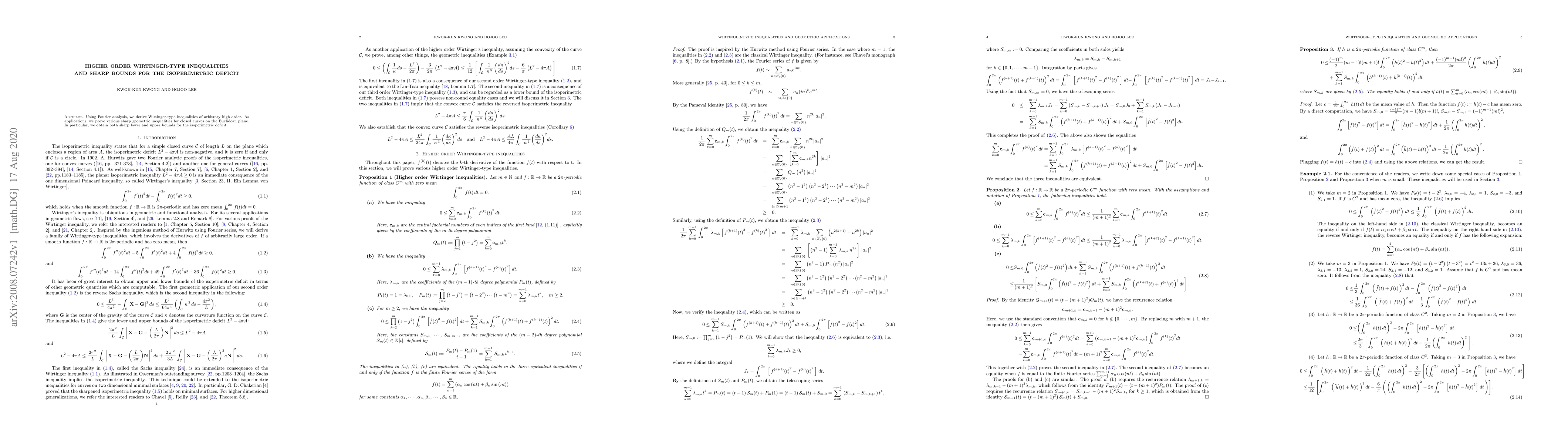 This paper uses Fourier analysis to derive high-order Wirtinger-type inequalities and applies these results to establish sharp geometric inequalities for closed curves in the plane, including precise bounds for the isoperimetric deficit.