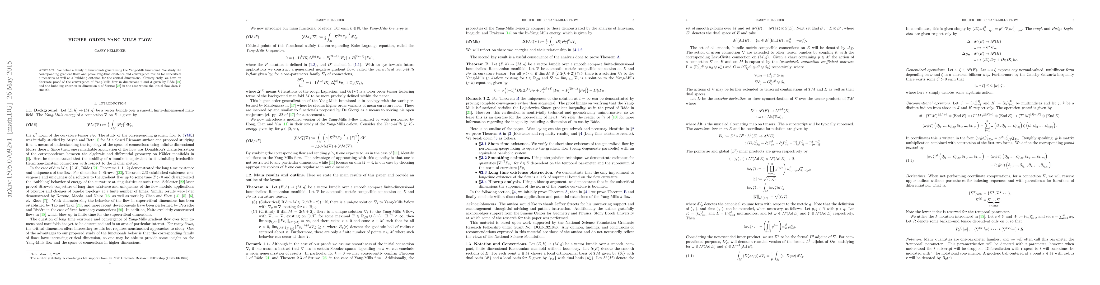 This paper defines a family of functionals extending the Yang-Mills functional and investigates their gradient flows, proving long-time existence and convergence for subcritical dimensions, along with a bubbling criterion for critical dimensions. It provides an alternate proof of the convergence of Yang-Mills flow in dimensions 2 and 3, and a bubbling criterion in dimension 4 for smooth initial data.