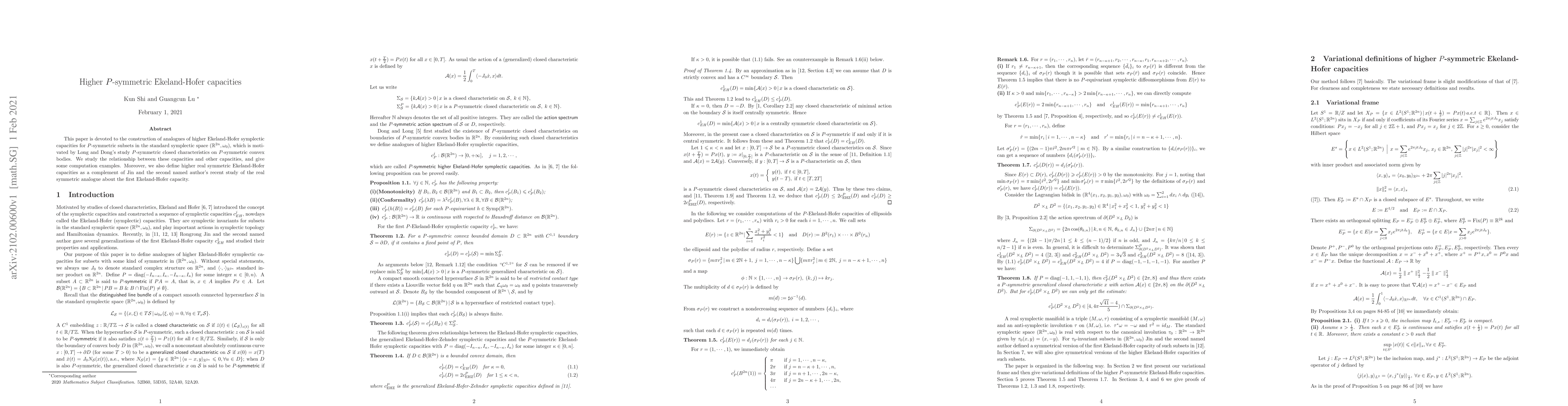 This paper constructs higher Ekeland-Hofer capacities for $P$-symmetric subsets in $(\mathbb{R}^{2n},\omega_0)$, relating them to other capacities and providing computational examples. It also defines higher real symmetric Ekeland-Hofer capacities as an extension of previous work on real symmetric analogues.