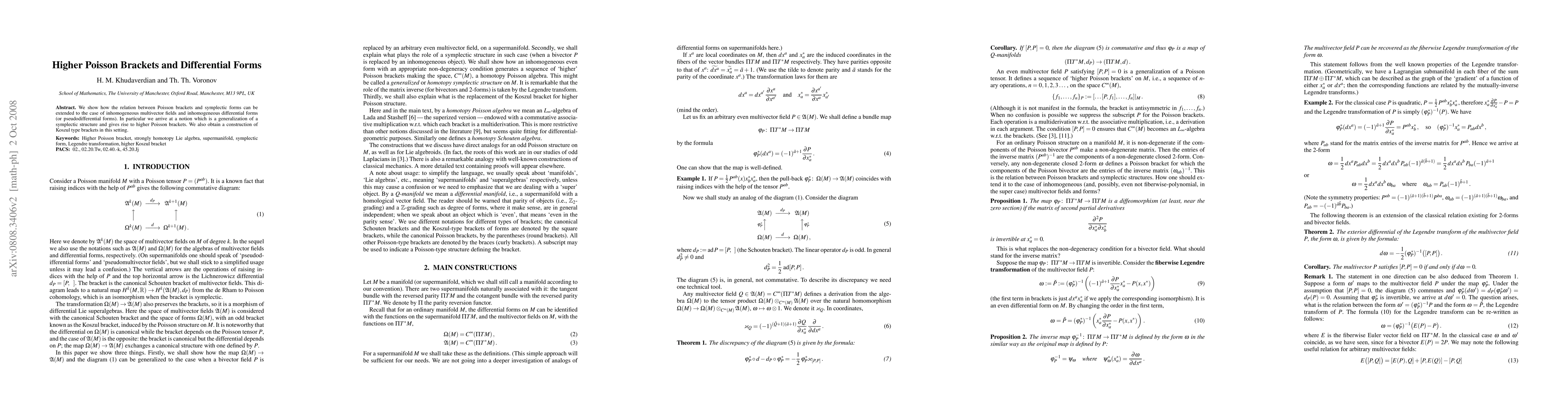 The paper extends the relationship between Poisson brackets and symplectic forms to inhomogeneous multivector fields and differential forms, introducing a generalized symplectic structure and higher Poisson brackets. It also constructs Koszul-type brackets in this broader framework.