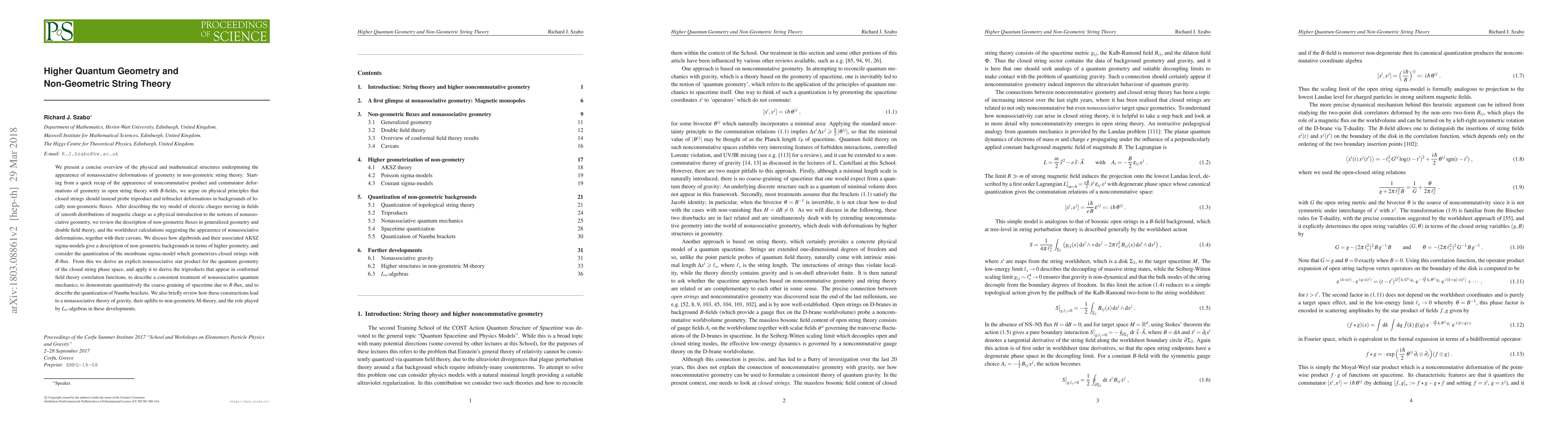 We present a concise overview of the physical and mathematical structures underpinning the appearence of nonassociative deformations of geometry in non-geometric string theory. Starting from a quick recap of the appearence of noncommutative product and commutator deformations of geometry in open string theory with $B$-fields, we argue on physical principles that closed strings should instead probe triproduct and tribracket deformations in backgrounds of locally non-geometric fluxes. After describing the toy model of electric charges moving in fields of smooth distributions of magnetic charge as a physical introduction to the notions of nonassociative geometry, we review the description of non-geometric fluxes in generalized geometry and double field theory, and the worldsheet calculations suggesting the appearence of nonassociative deformations, together with their caveats. We discuss how algebroids and their associated AKSZ sigma-models give a description of non-geometric backgrounds in terms of higher geometry, and consider the quantization of the membrane sigma-model which geometrizes closed strings with $R$-flux. From this we derive an explicit nonassociative star product for the quantum geometry of the closed string phase space, and apply it to derive the triproducts that appear in conformal field theory correlation functions, to describe a consistent treatment of nonassociative quantum mechanics, to demonstrate quantitatively the coarse-graining of spacetime due to $R$-flux, and to describe the quantization of Nambu brackets. We also briefly review how these constructions lead to a nonassociative theory of gravity, their uplifts to non-geometric M-theory, and the role played by $L_\infty$-algebras in these developments.