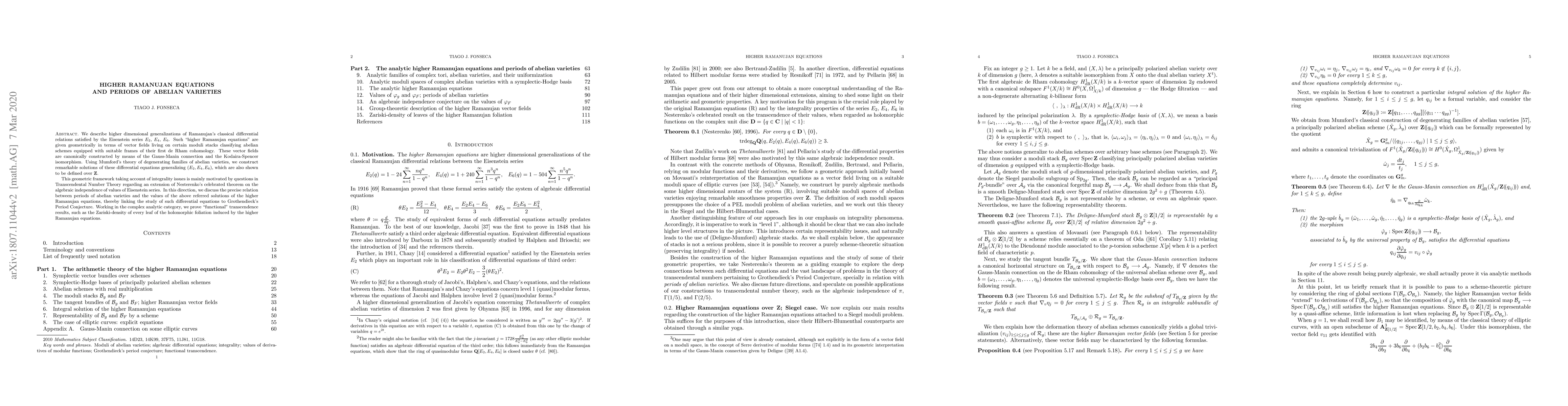 This paper generalizes Ramanujan's differential equations for Eisenstein series to higher dimensions, framing them geometrically via moduli stacks of abelian varieties. It constructs solutions defined over $\mathbf{Z}$ and connects these to periods of abelian varieties, aiming to extend Nesterenko's theorem on Eisenstein series values' algebraic independence and linking to Grothendieck's Period Conjecture.