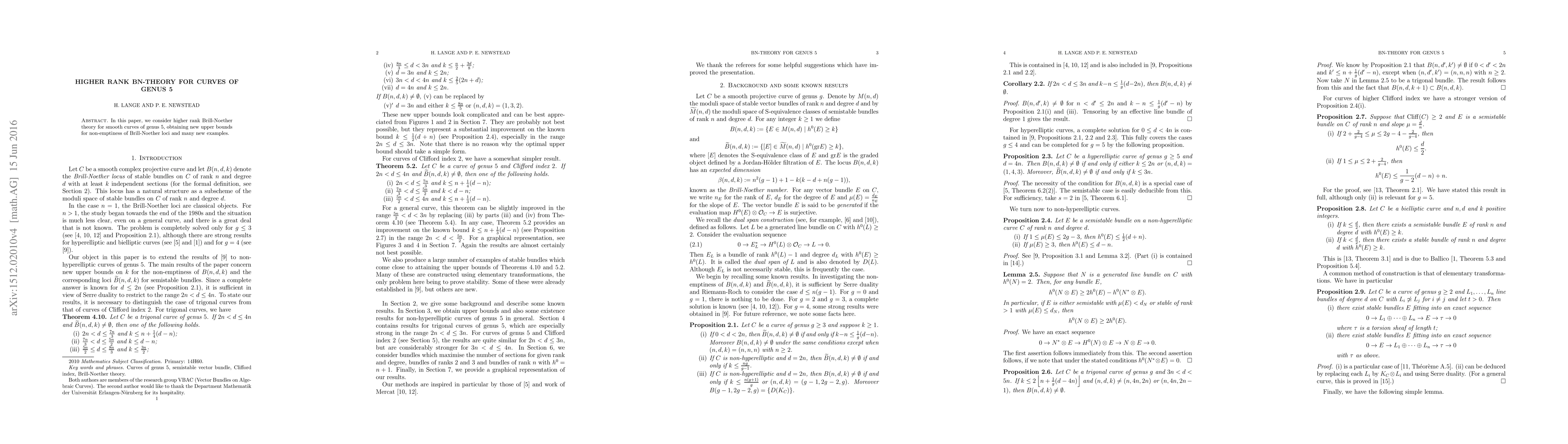 This paper investigates higher rank Brill-Noether theory for smooth curves of genus 5, providing new upper bounds for the non-emptiness of Brill-Noether loci and introducing numerous examples.