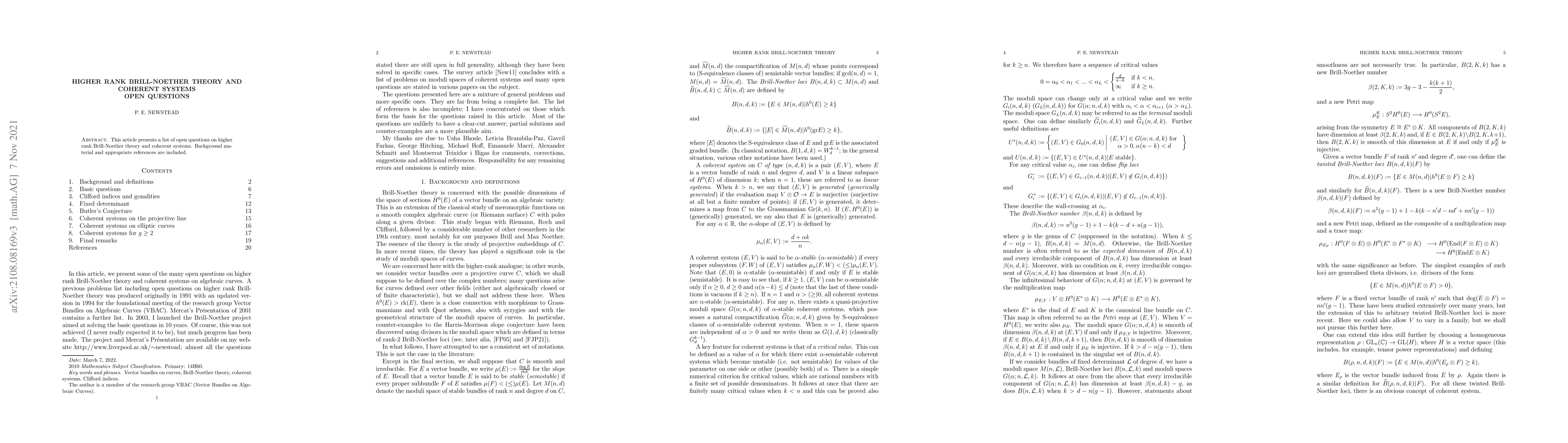 This paper lists open questions in higher rank Brill-Noether theory and coherent systems, providing necessary background and references to frame the ongoing research challenges in these areas. It aims to guide future studies in these mathematical fields.