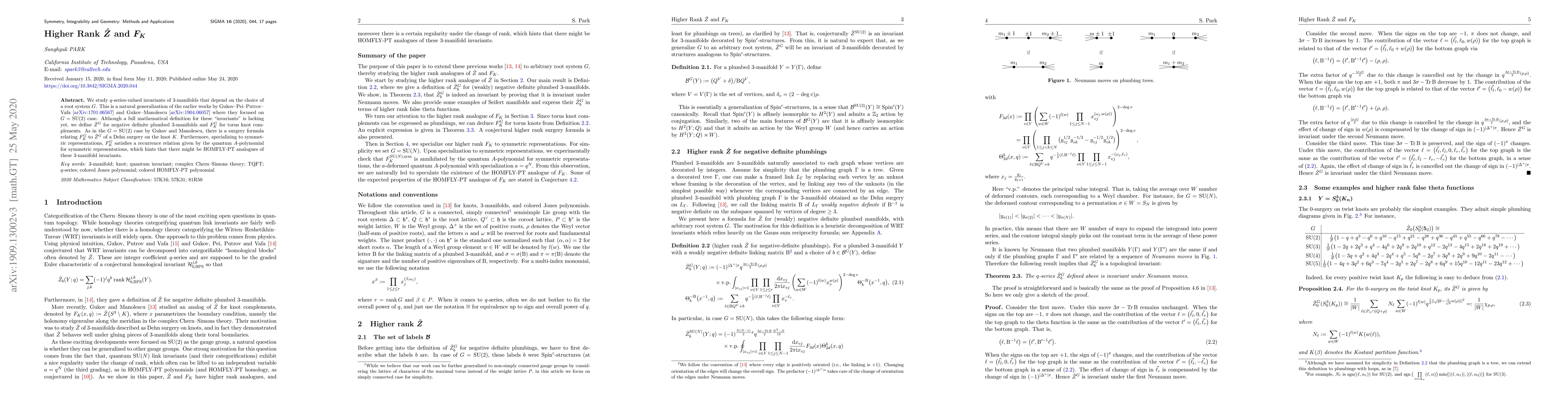 This paper generalizes the study of $q$-series-valued invariants of 3-manifolds beyond the $G={\rm SU}(2)$ case, introducing $\hat{Z}^G$ for plumbed 3-manifolds and $F_K^G$ for torus knot complements based on different root systems $G$. A surgery formula connects $F_K^G$ to $\hat{Z}^G$, and for symmetric representations, $F_K^G$ obeys a recurrence relation hinting at HOMFLY-PT analogues.