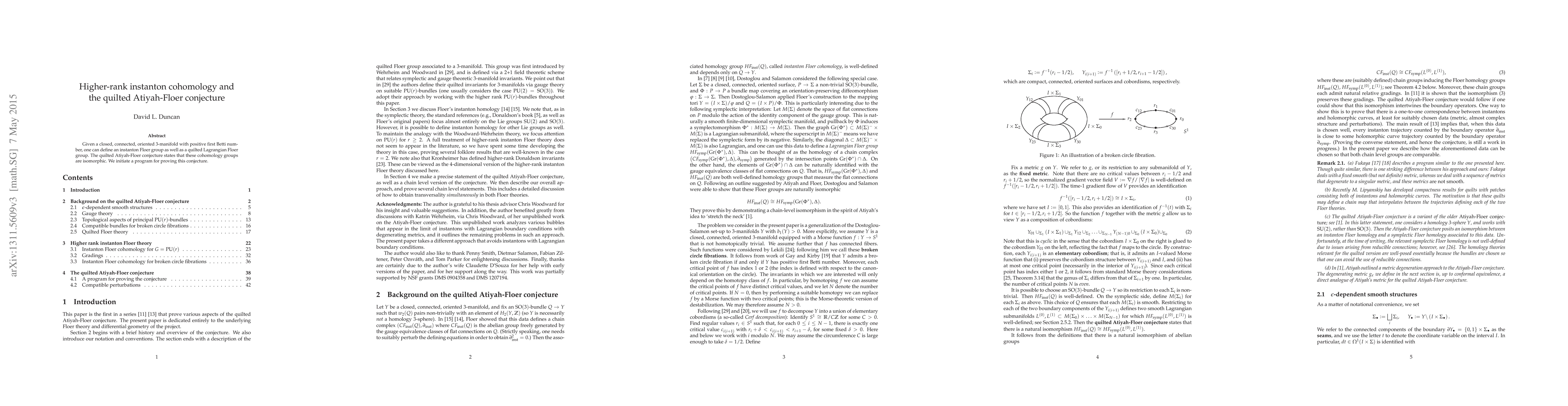 Given a closed, connected, oriented 3-manifold with positive first Betti number, one can define an instanton Floer group as well as a quilted Lagrangian Floer group. The quilted Atiyah-Floer conjecture states that these cohomology groups are isomorphic. We initiate a program for proving this conjecture.