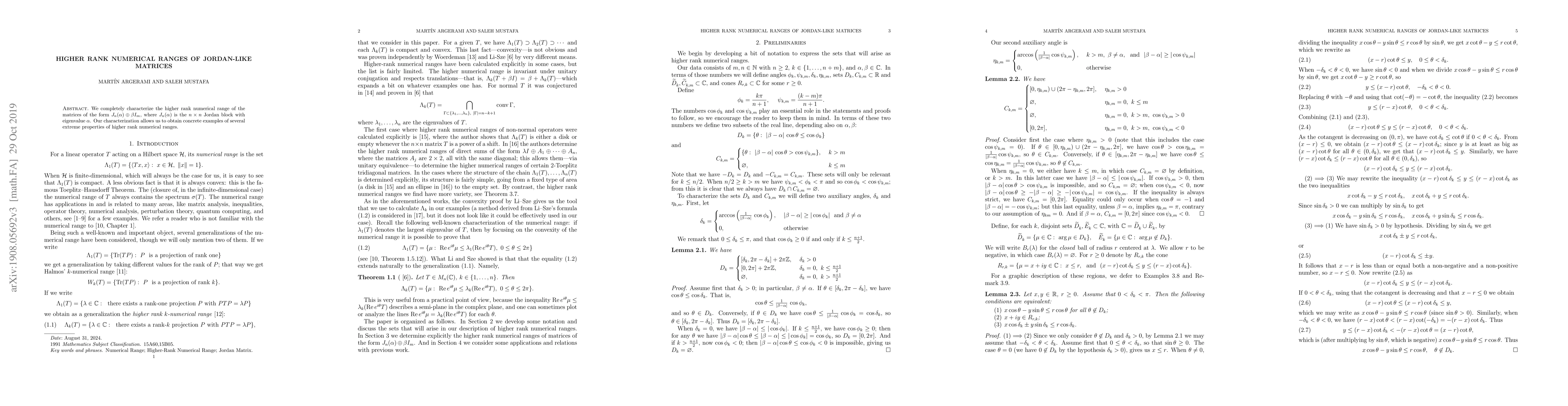 We completely characterize the higher rank numerical range of the matrices of the form $J_n(\alpha)\oplus\beta I_m$, where $J_n(\alpha)$ is the $n\times n$ Jordan block with eigenvalue $\alpha$. Our characterization allows us to obtain concrete examples of several extreme properties of higher rank numerical ranges.