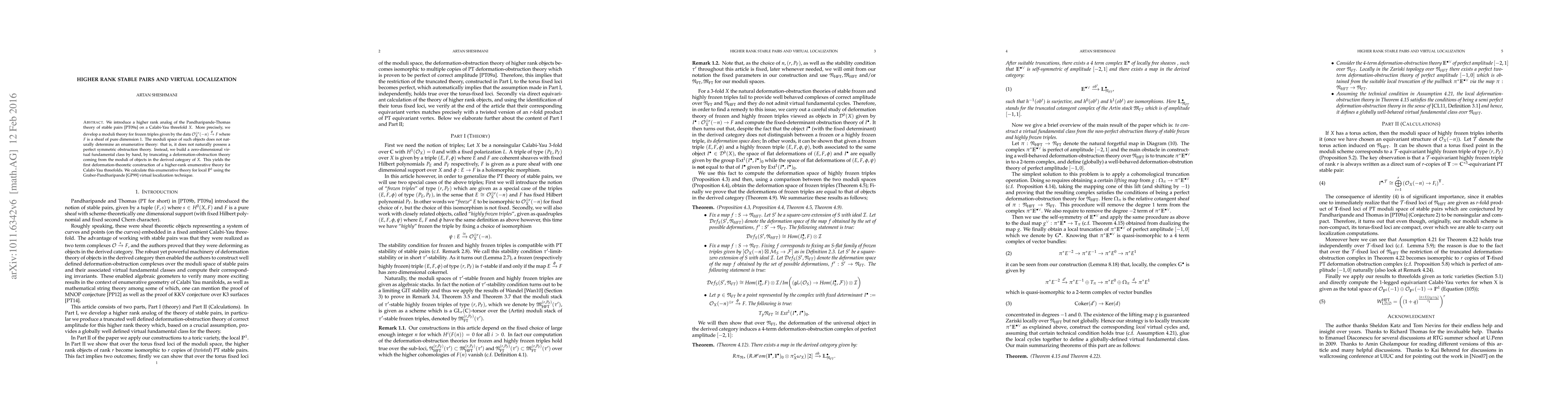 This paper develops a higher rank version of the Pandharipande-Thomas theory for stable pairs on Calabi-Yau threefolds, introducing a moduli theory for frozen triples. It constructs a zero-dimensional virtual fundamental class to address the lack of a natural enumerative theory, enabling the first deformation-theoretic construction of a higher-rank enumerative theory.