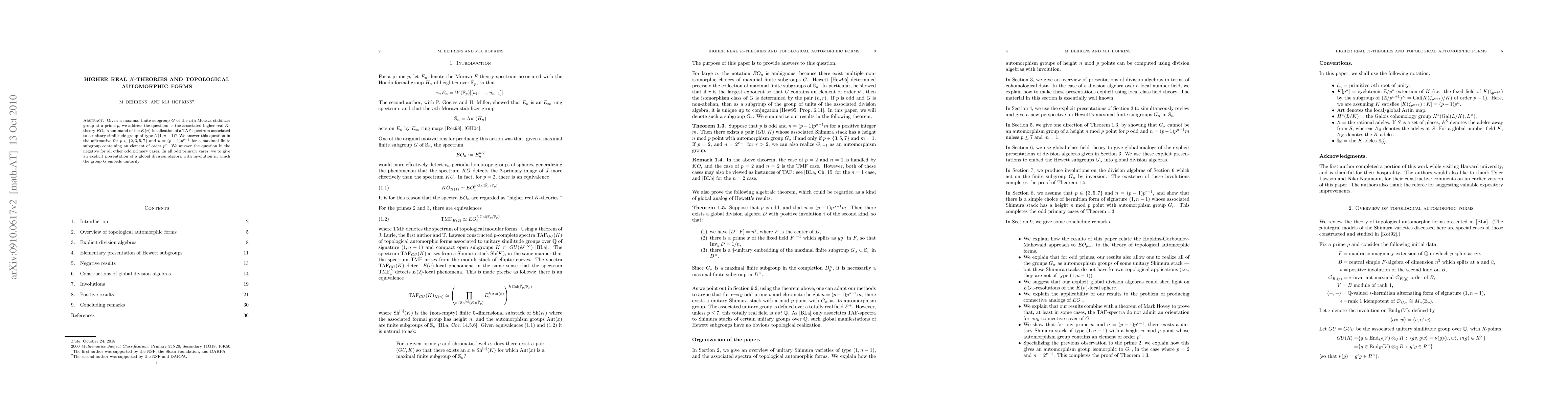 This research paper investigates higher real K-theories and topological automorphic forms, answering whether certain types of unitary similitude groups embed in global division algebras with involution, with key affirmative results for primes 2, 3, 5, 7 and negative results for all other odd primary cases.