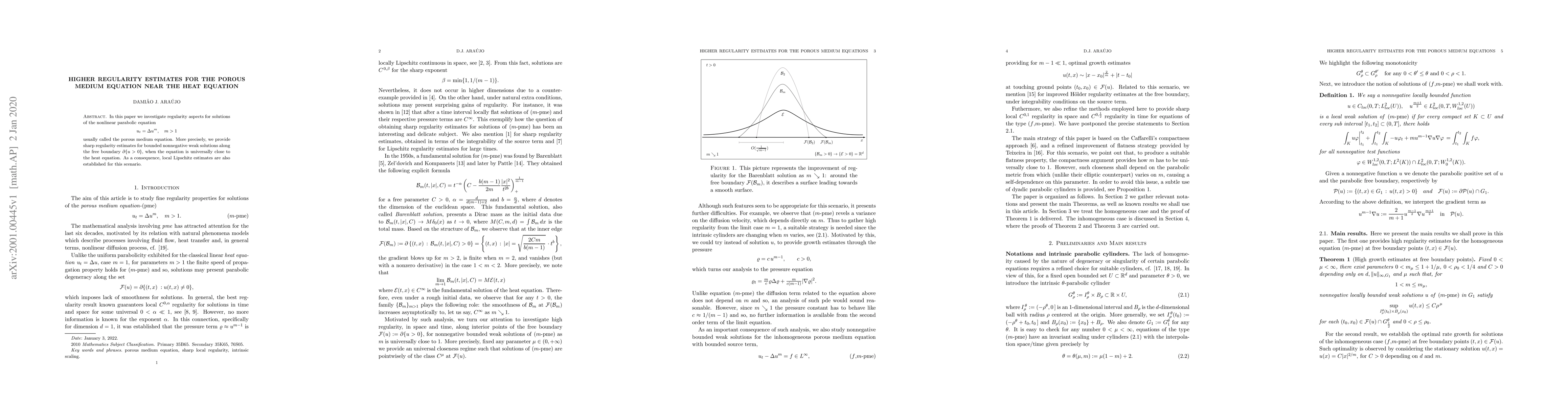 This paper investigates the regularity of solutions to the porous medium equation near the heat equation, providing sharp estimates for bounded nonnegative weak solutions along the free boundary, and establishing local Lipschitz estimates for this scenario.
