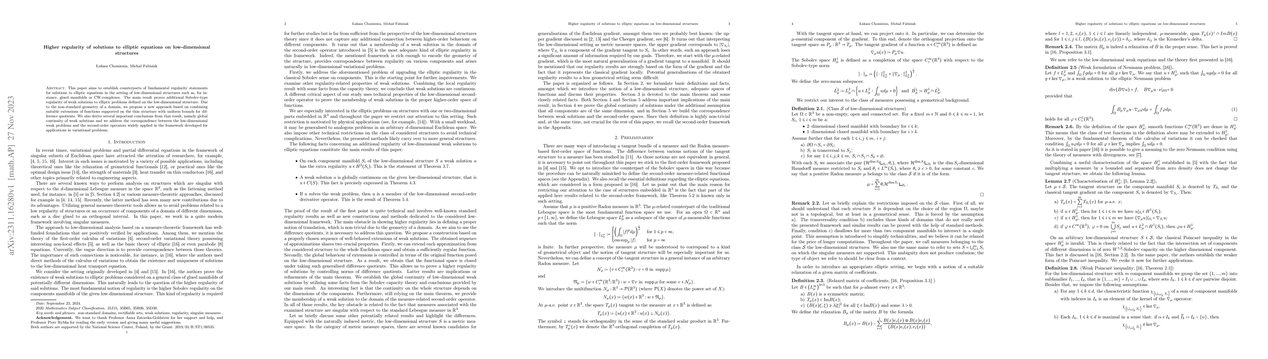 This paper establishes additional Sobolev-type regularity for weak solutions to elliptic equations on low-dimensional structures like glued manifolds or CW-complexes. It introduces a novel approach combining function extensions and uniform bounds for difference quotients, leading to global continuity of weak solutions and correspondence with second-order operators in variational problems.