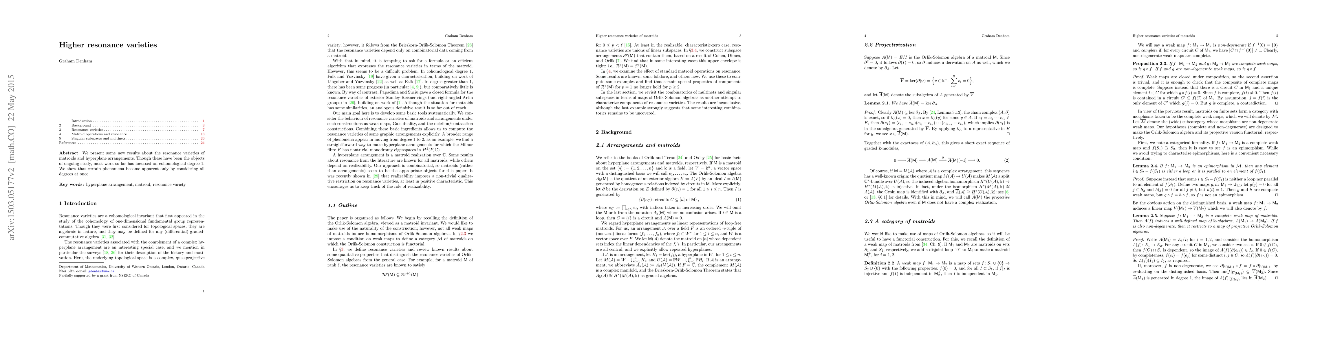 We present some new results about the resonance varieties of matroids and hyperplane arrangements. Though these have been the objects of ongoing study, most work so far has focussed on cohomological degree 1. We show that certain phenomena become apparent only by considering all degrees at once.
