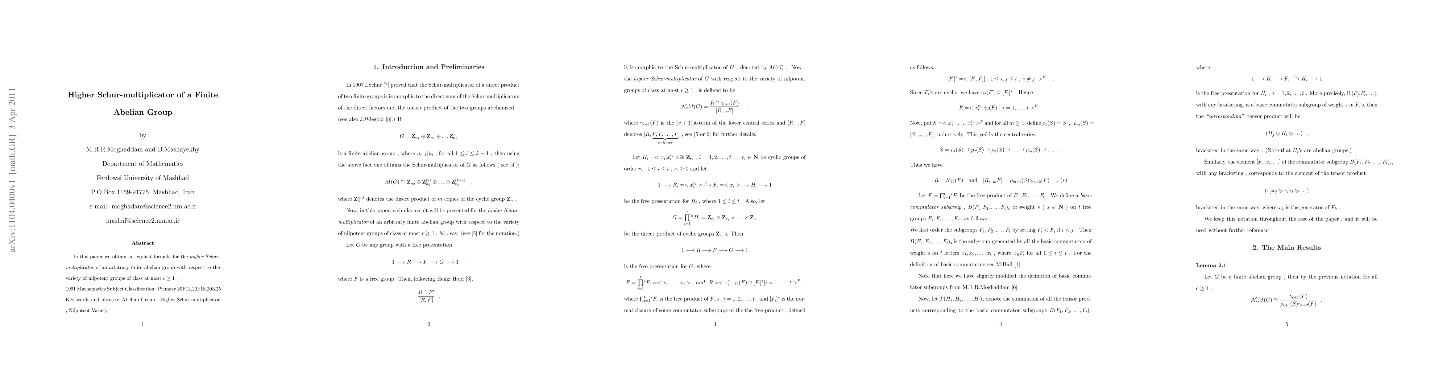 In this paper we obtain an explicit formula for the higher Schur-multiplicator of an arbitrary finite abelian group with respect to the variety of nilpotent groups of class at most $c\geq 1$ .